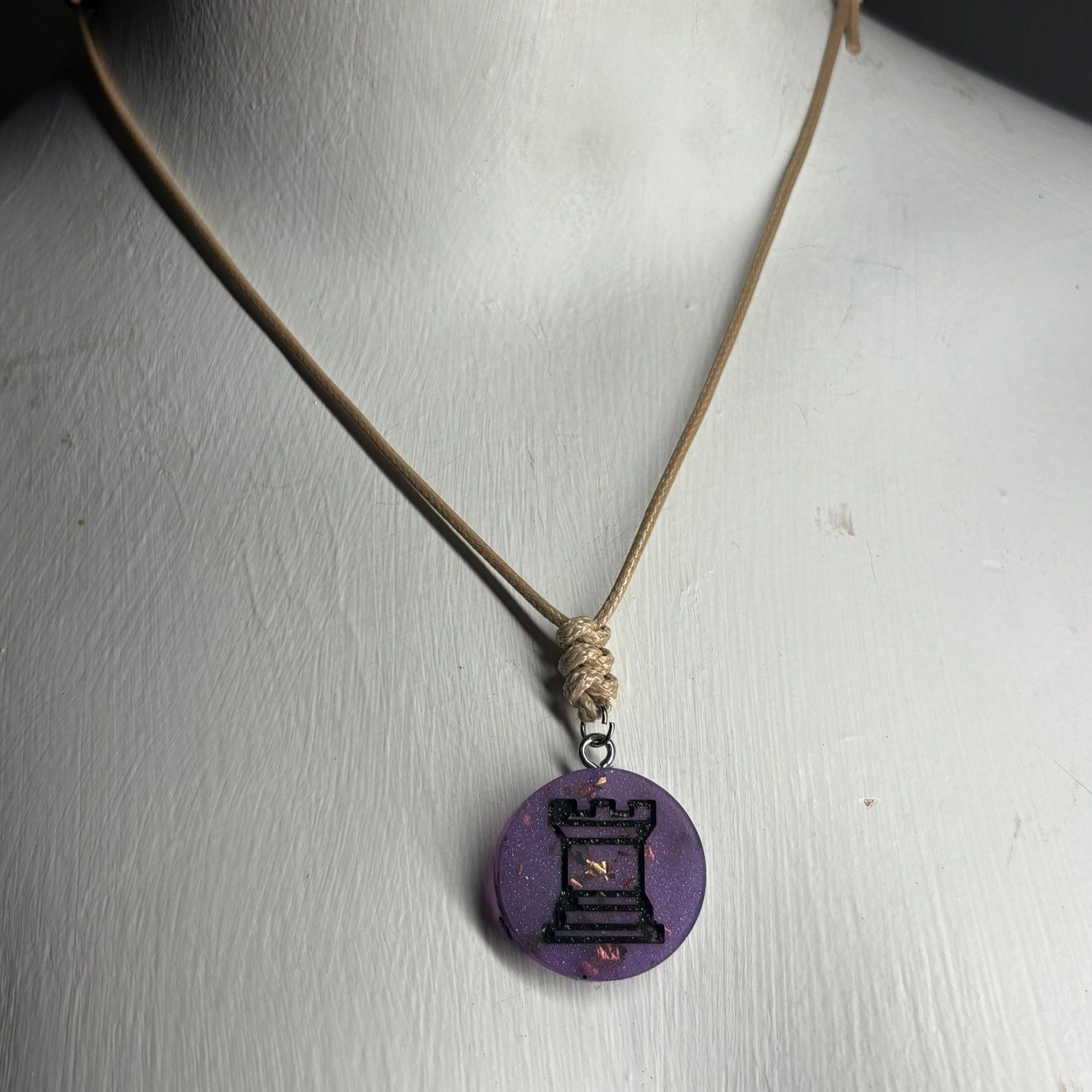 Classic Dark Purple Rook - Handmade Resin Chess Necklace