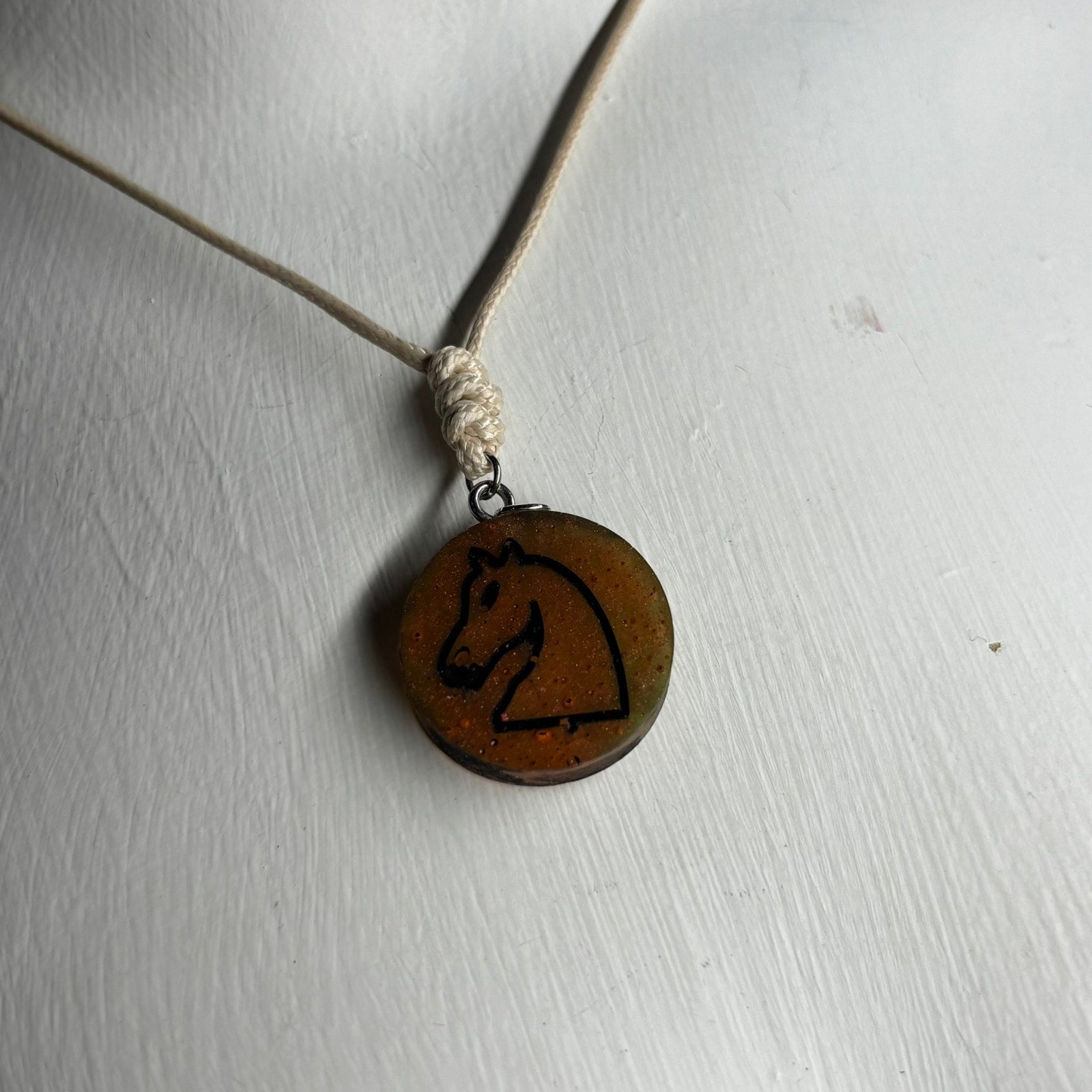 Coffee Brown Knight - Handmade Resin Chess Necklace