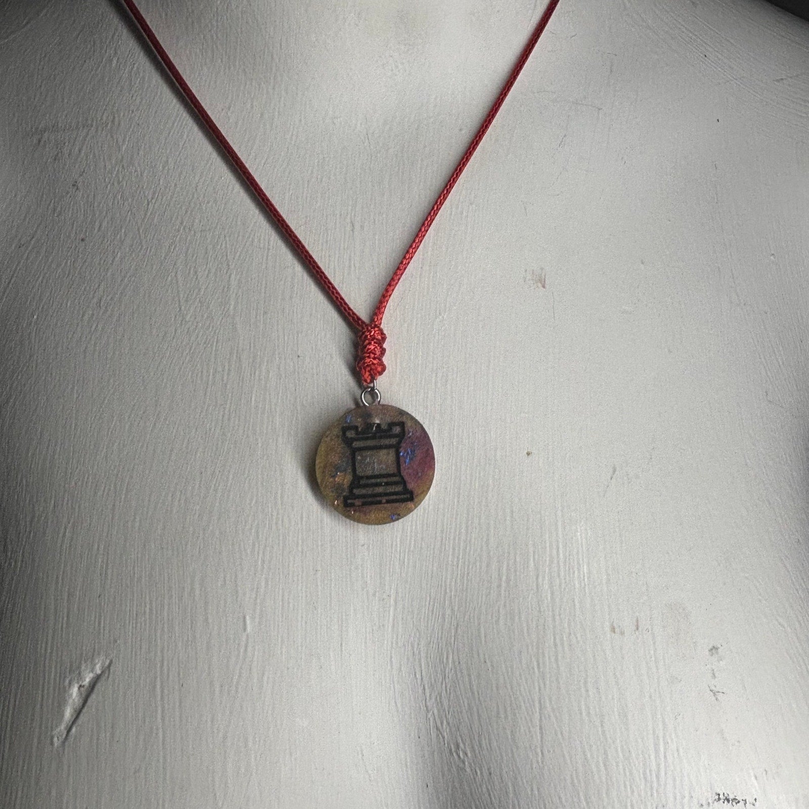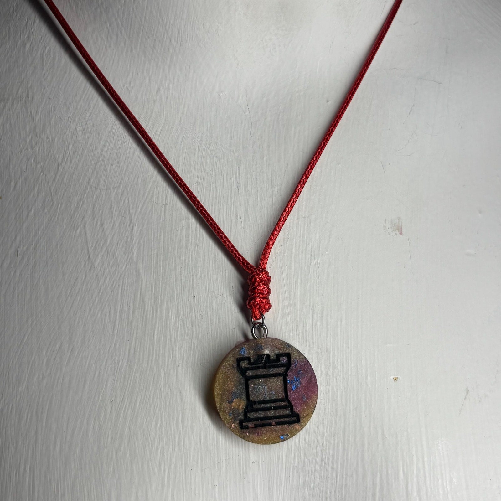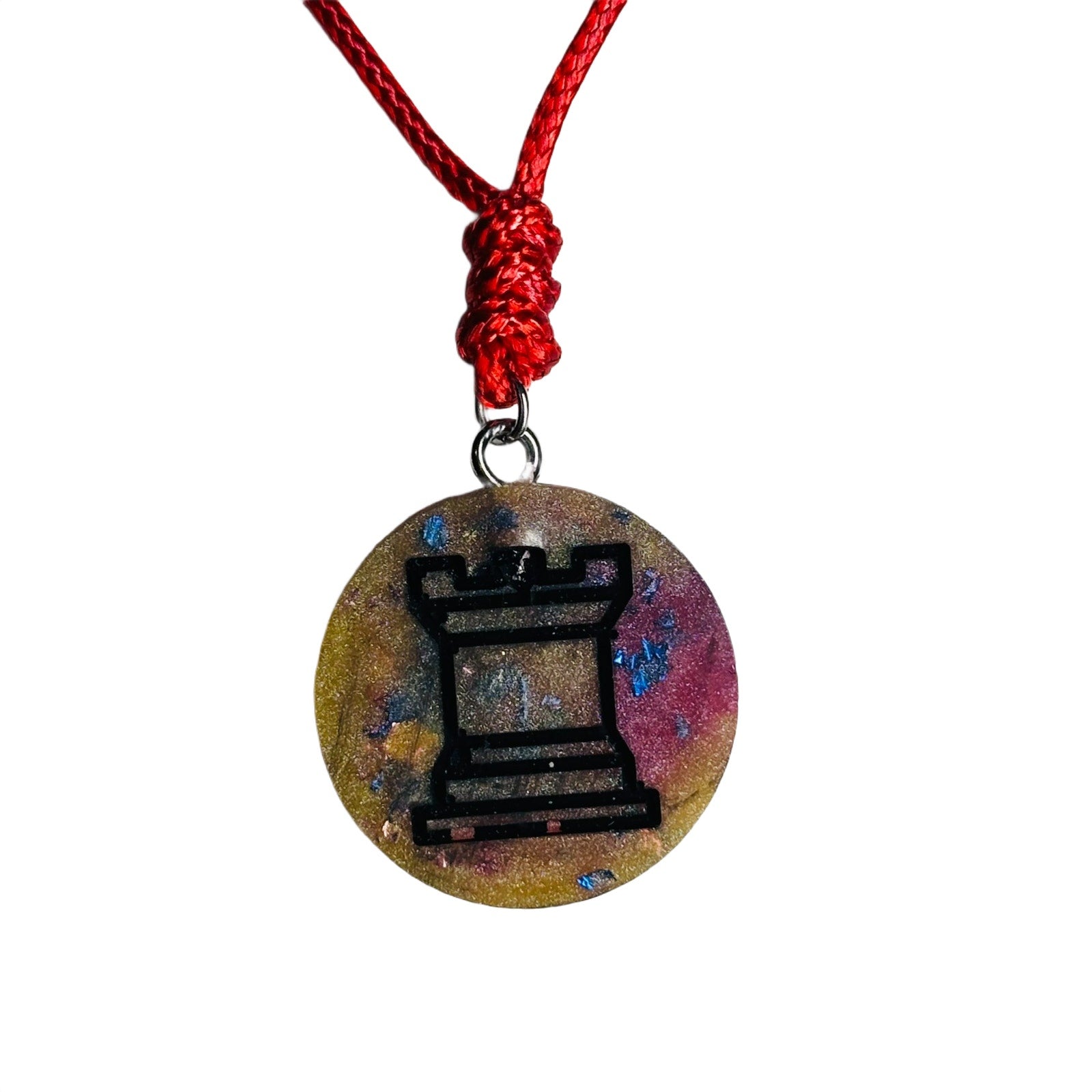 Color Meshed Rook - Handmade Resin Chess Necklace