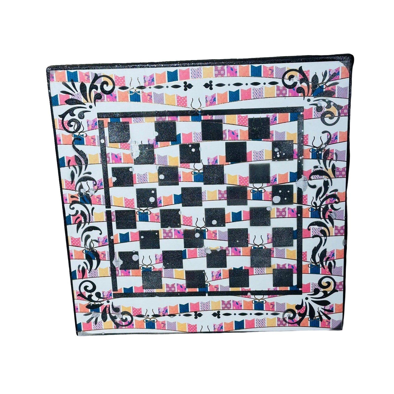Each board features a layer of beautifully Scrapbook Paper Fused/Glued with particle board to give it a unique pretty pattern. We then paint squares onto the board to make them into fabulous chess boards. Made with a sturdy particle board base and smooth, beveled edges, this board is stunning.