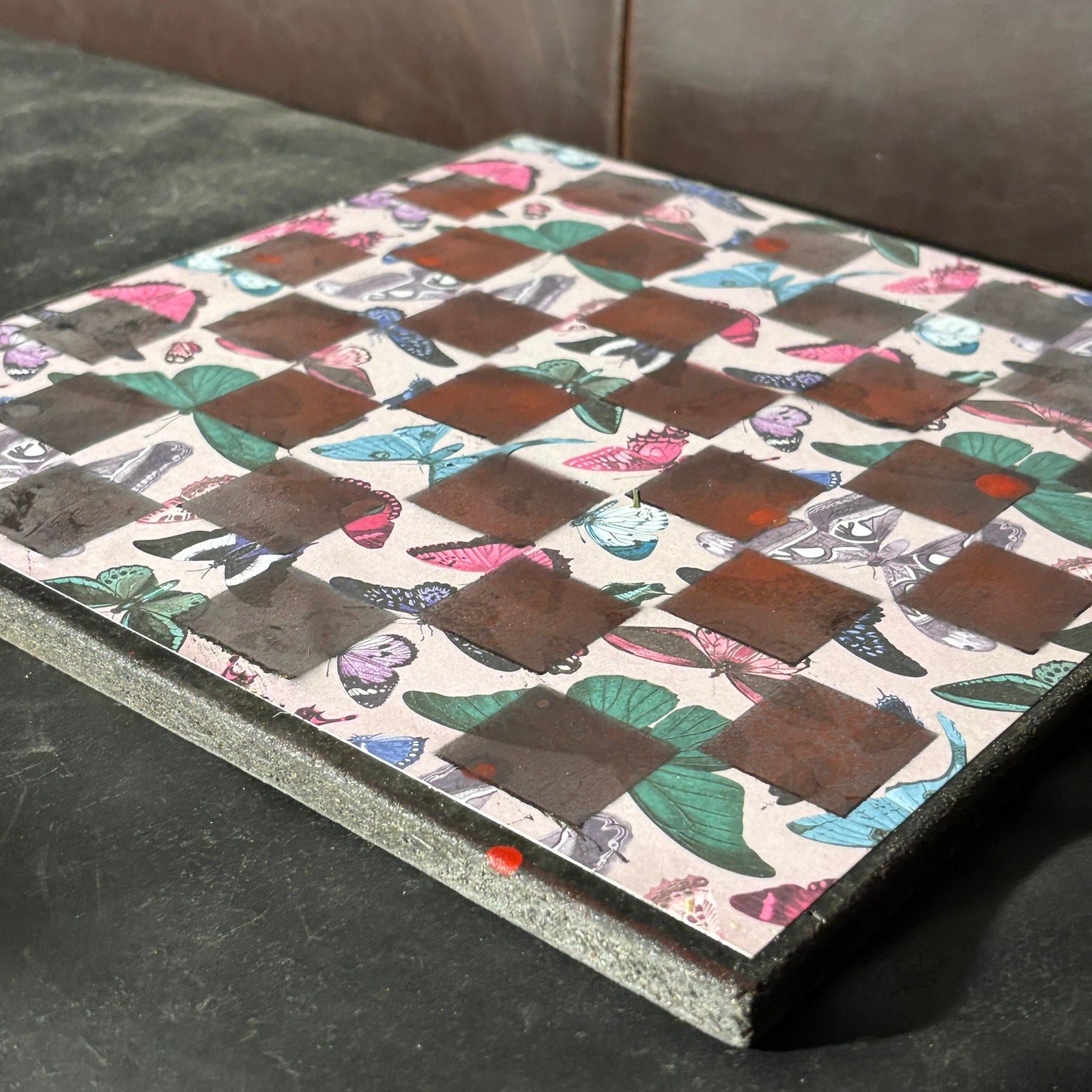 Each board features a layer of beautifully Scrapbook Paper Fused/Glued with particle board to give it a unique pretty pattern. We then paint squares onto the board to make them into fabulous chess boards. Made with a sturdy particle board base and smooth, beveled edges, this board is stunning.