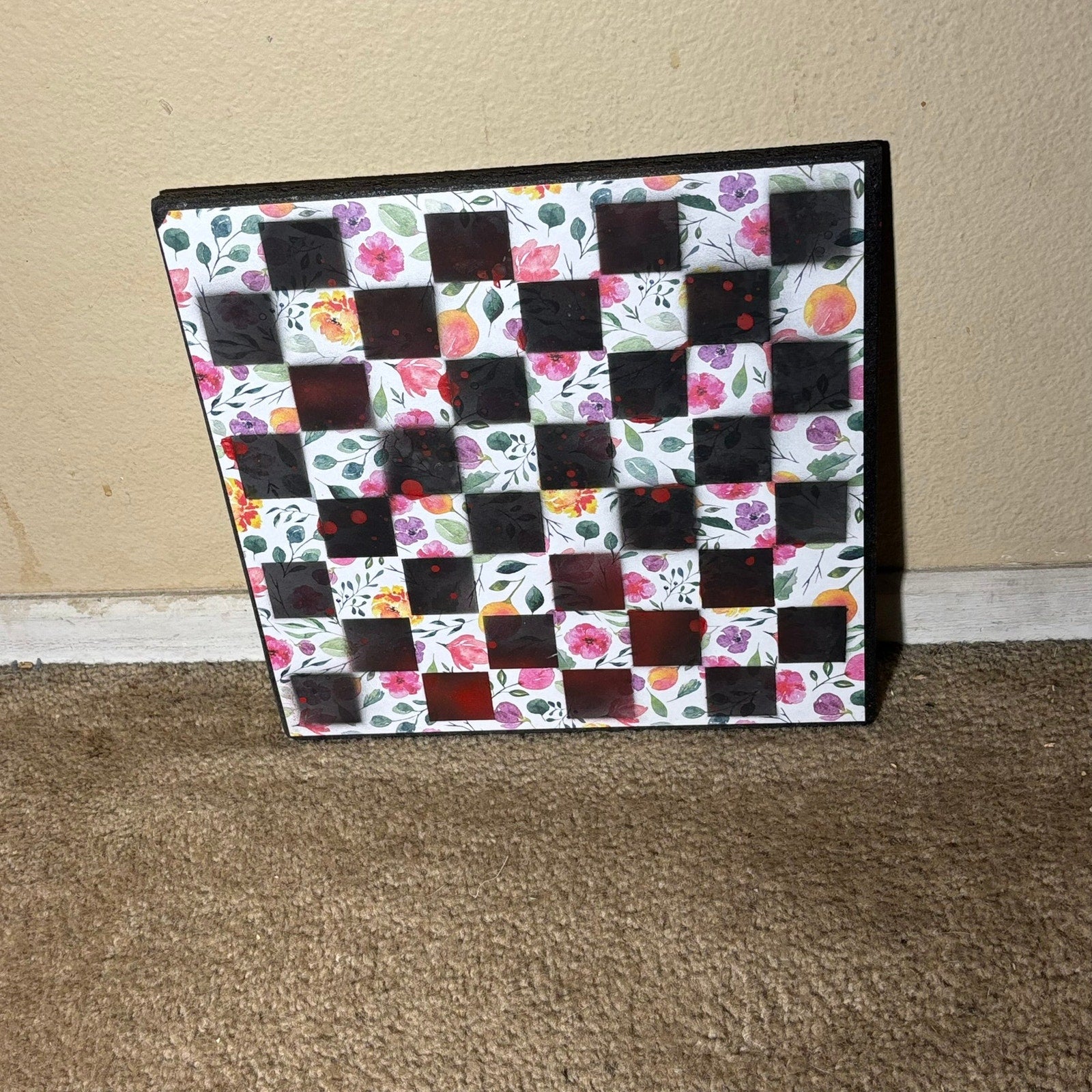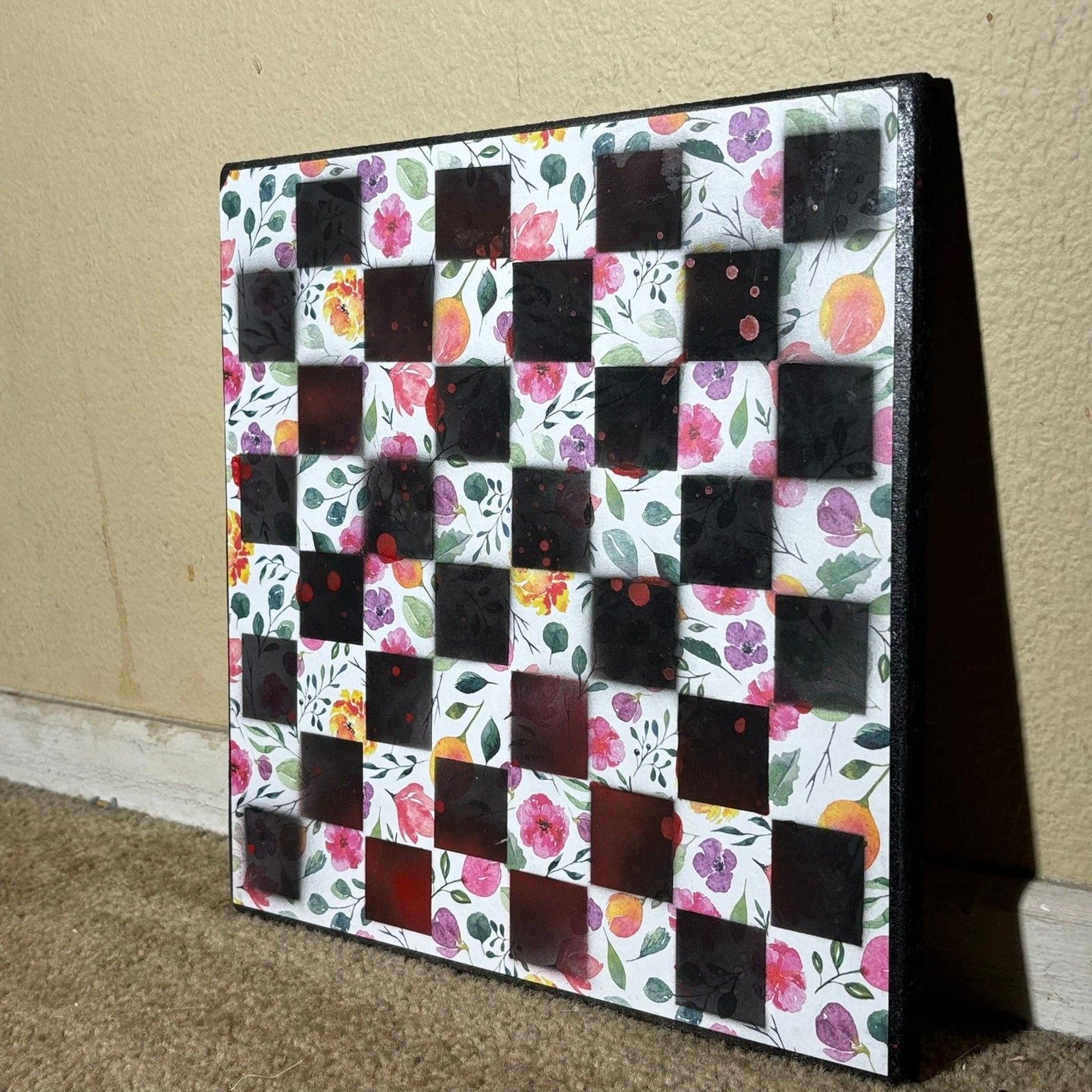 Each board features a layer of beautifully Scrapbook Paper Fused/Glued with particle board to give it a unique pretty pattern. We then paint squares onto the board to make them into fabulous chess boards. Made with a sturdy particle board base and smooth, beveled edges, this board is stunning.