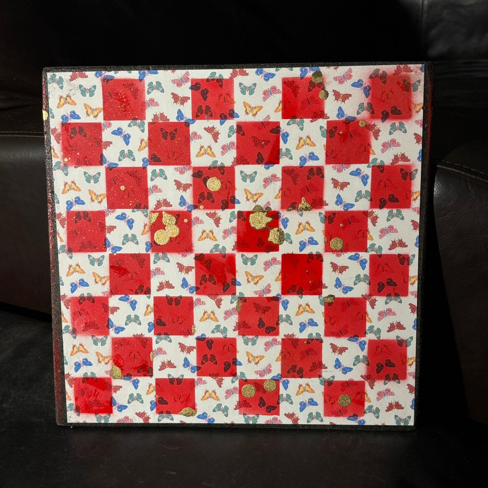 Each board features a layer of beautifully Scrapbook Paper Fused/Glued with particle board to give it a unique pretty pattern. We then paint squares onto the board to make them into fabulous chess boards. Made with a sturdy particle board base and smooth, beveled edges, this board is stunning.