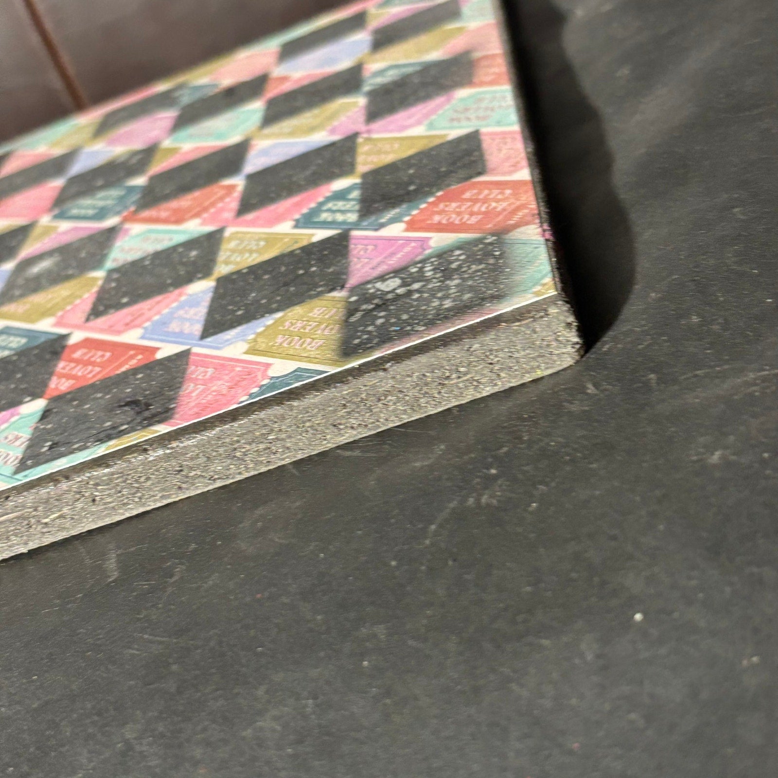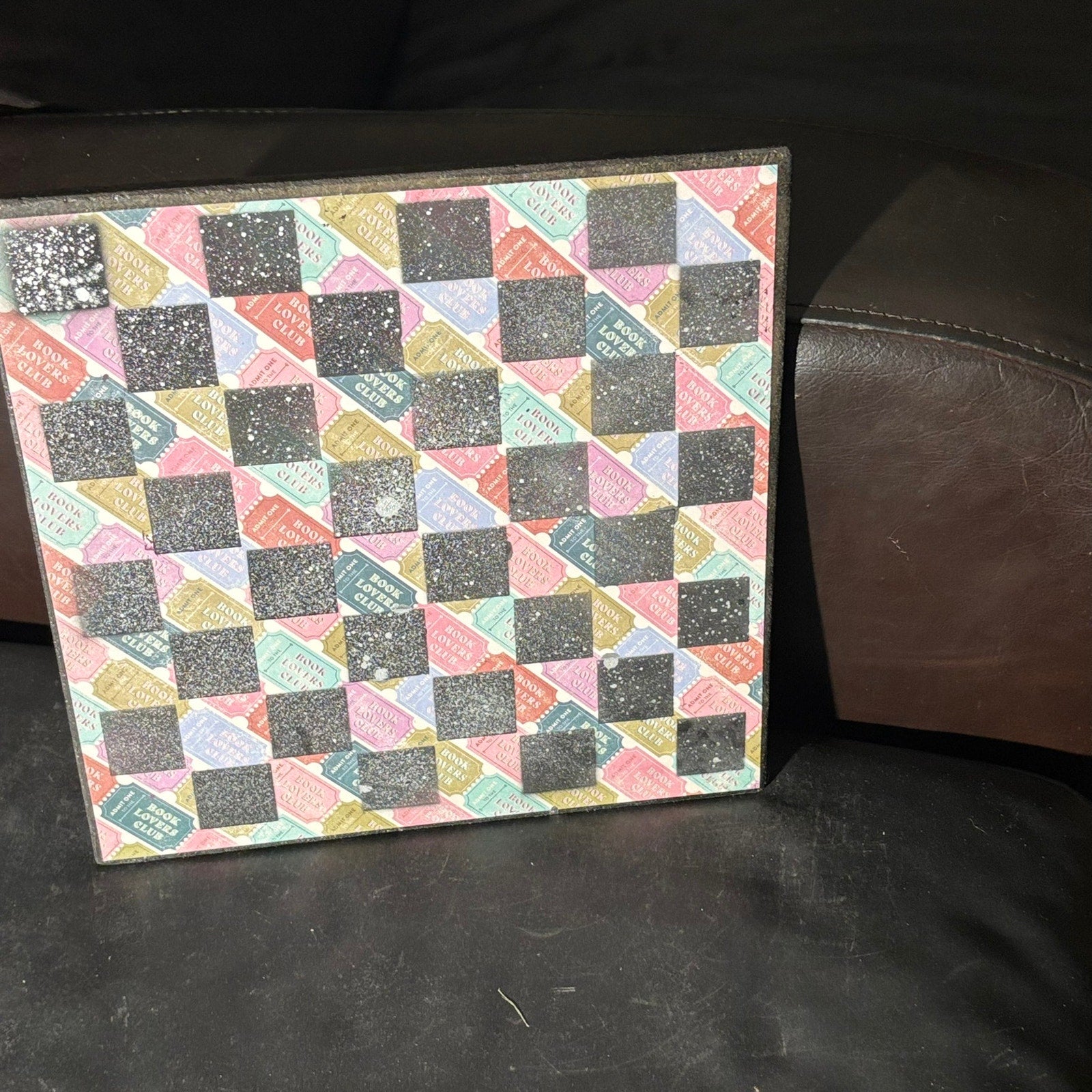 Each board features a layer of beautifully Scrapbook Paper Fused/Glued with particle board to give it a unique pretty pattern. We then paint squares onto the board to make them into fabulous chess boards. Made with a sturdy particle board base and smooth, beveled edges, this board is stunning.