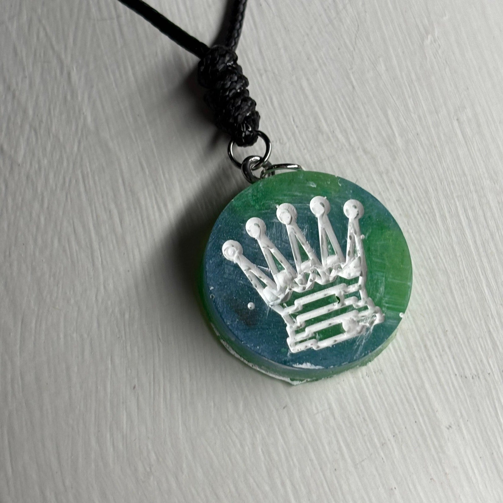 Cosmic Green Queen - Handmade Resin Chess Necklace