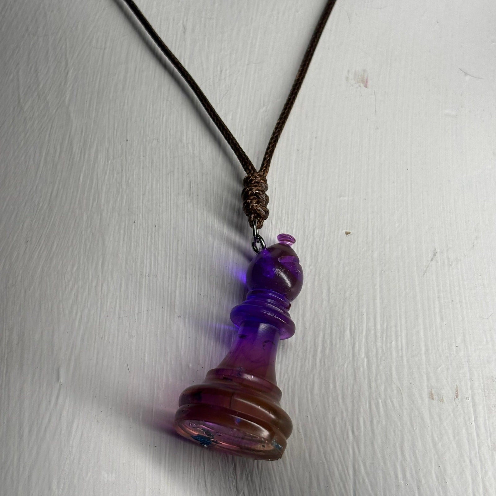 Cosmic Purple Bishop - Handmade Resin Chess Necklace