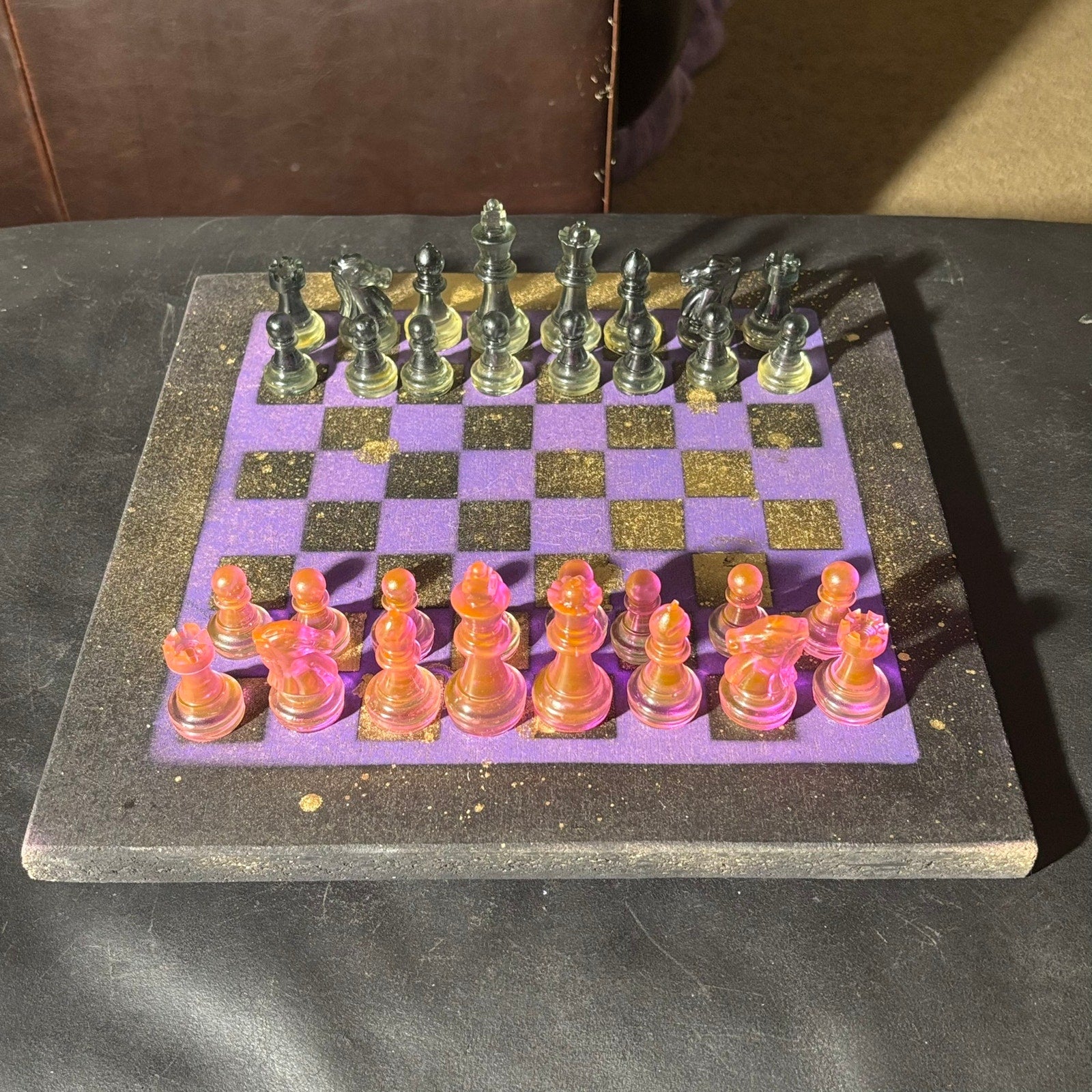 *** PLEASE READ: The resin pieces that have clear transparent parts will slowly turn royal amber as time goes on (Clear see through resin turn amber with time). Most of the sets are solid or colored so there is no need to expect a change at all, but some have clear transparent bottoms that will turn amber. I write this because some of our chess sets may not sell for a year or two and the photos are taken when the item is listed online. Meaning the photos will have slight difference. Rest assured, the amber is beautiful and vintage!