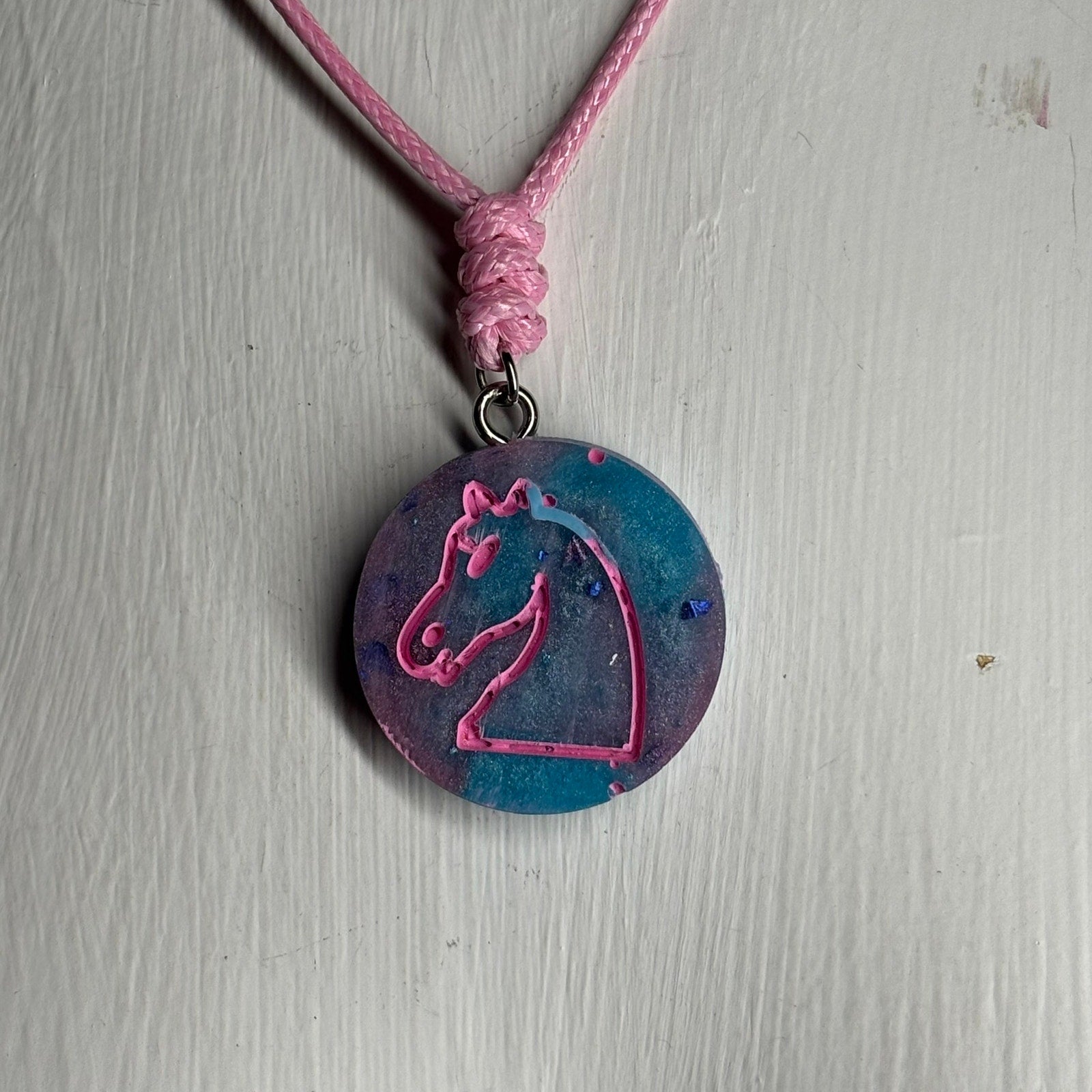 Cotton Candy Pink Knight - Handmade Resin Chess Necklace