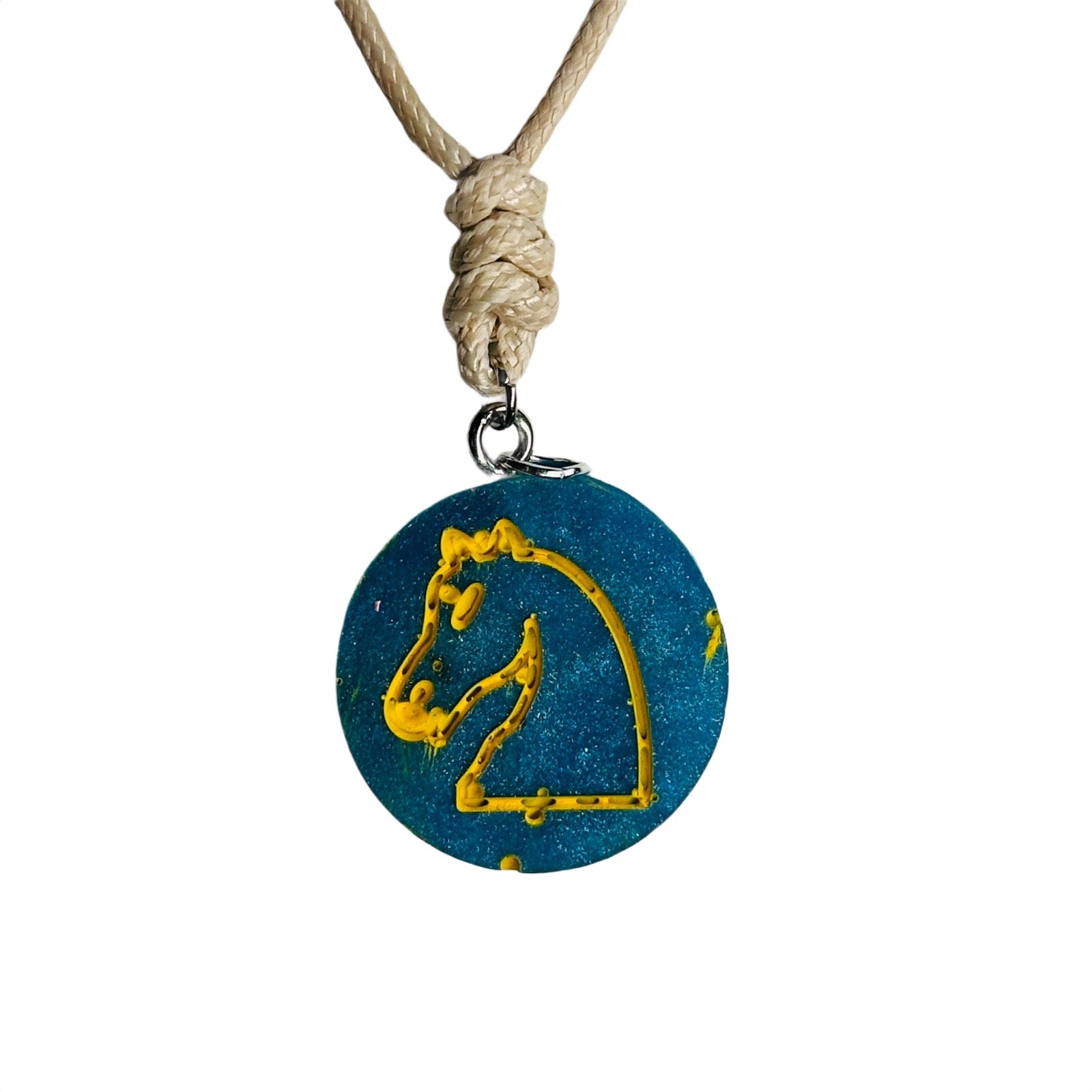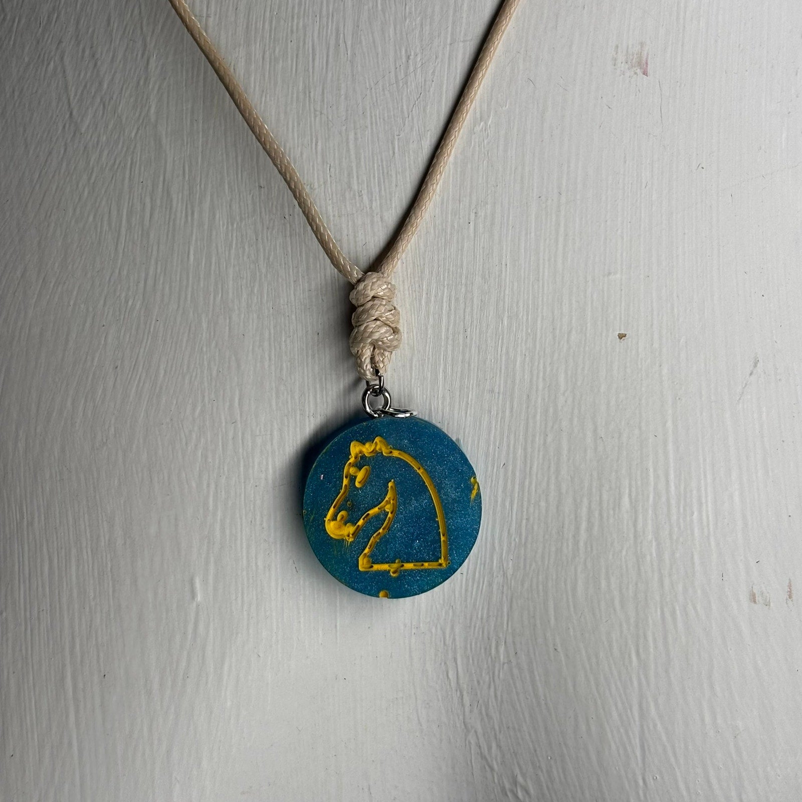 Cream Blue Knight - Handmade Resin Chess Necklace