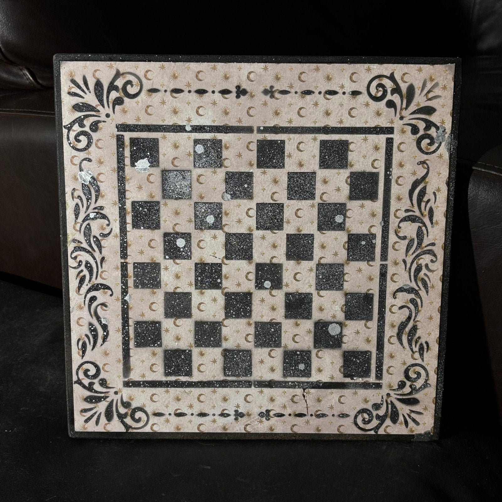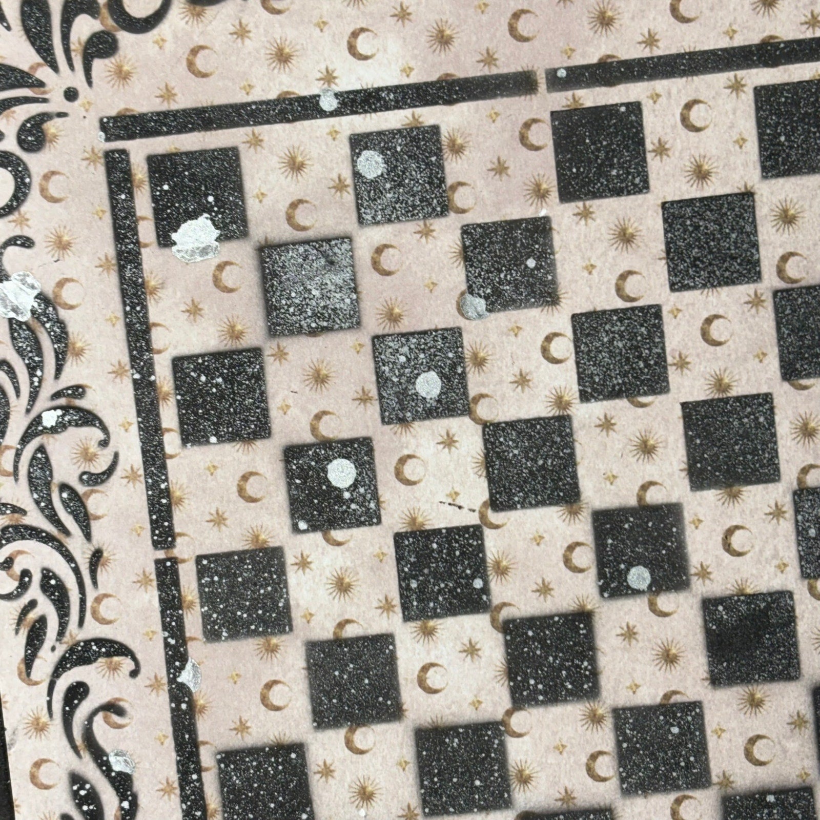 Each board features a layer of beautifully Scrapbook Paper Fused/Glued with particle board to give it a unique pretty pattern. We then paint squares onto the board to make them into fabulous chess boards. Made with a sturdy particle board base and smooth, beveled edges, this board is stunning.