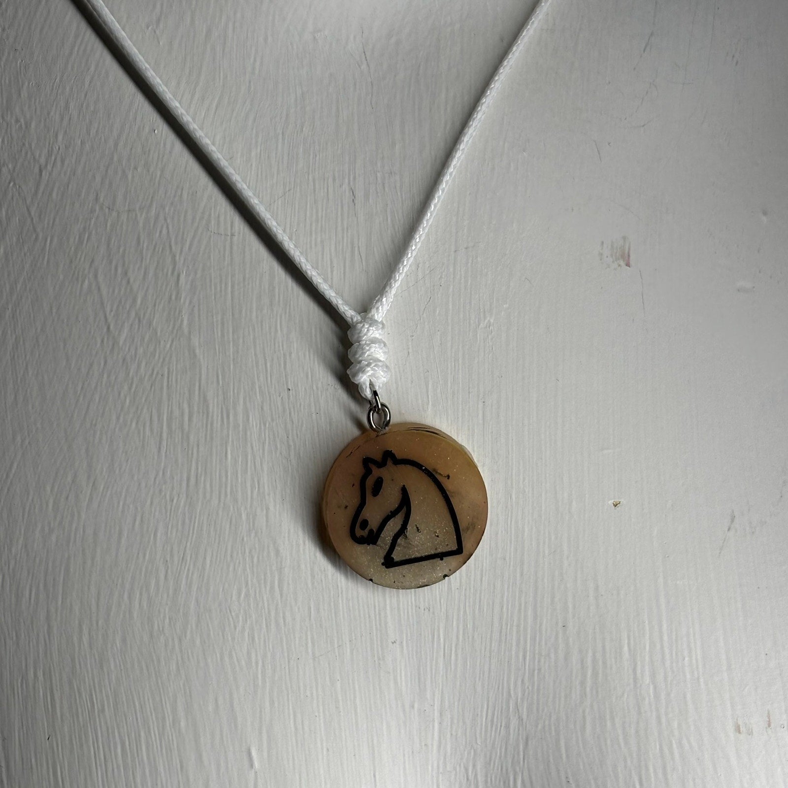 Cream Orange Knight - Handmade Resin Chess Necklace