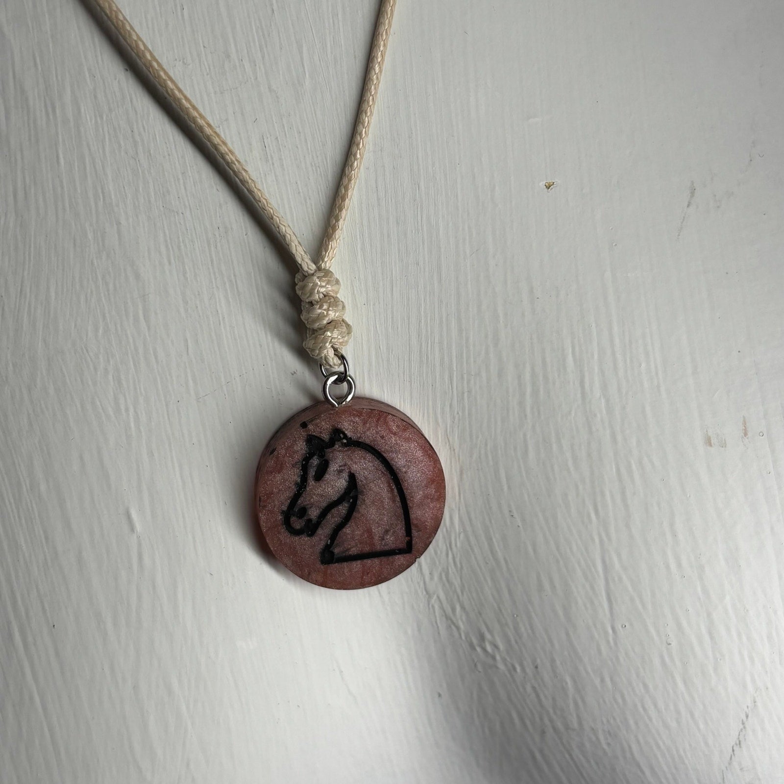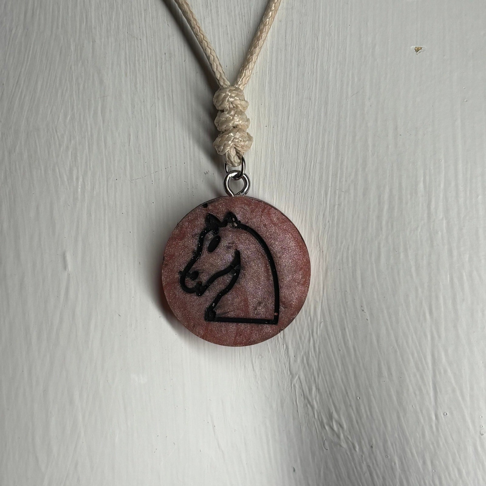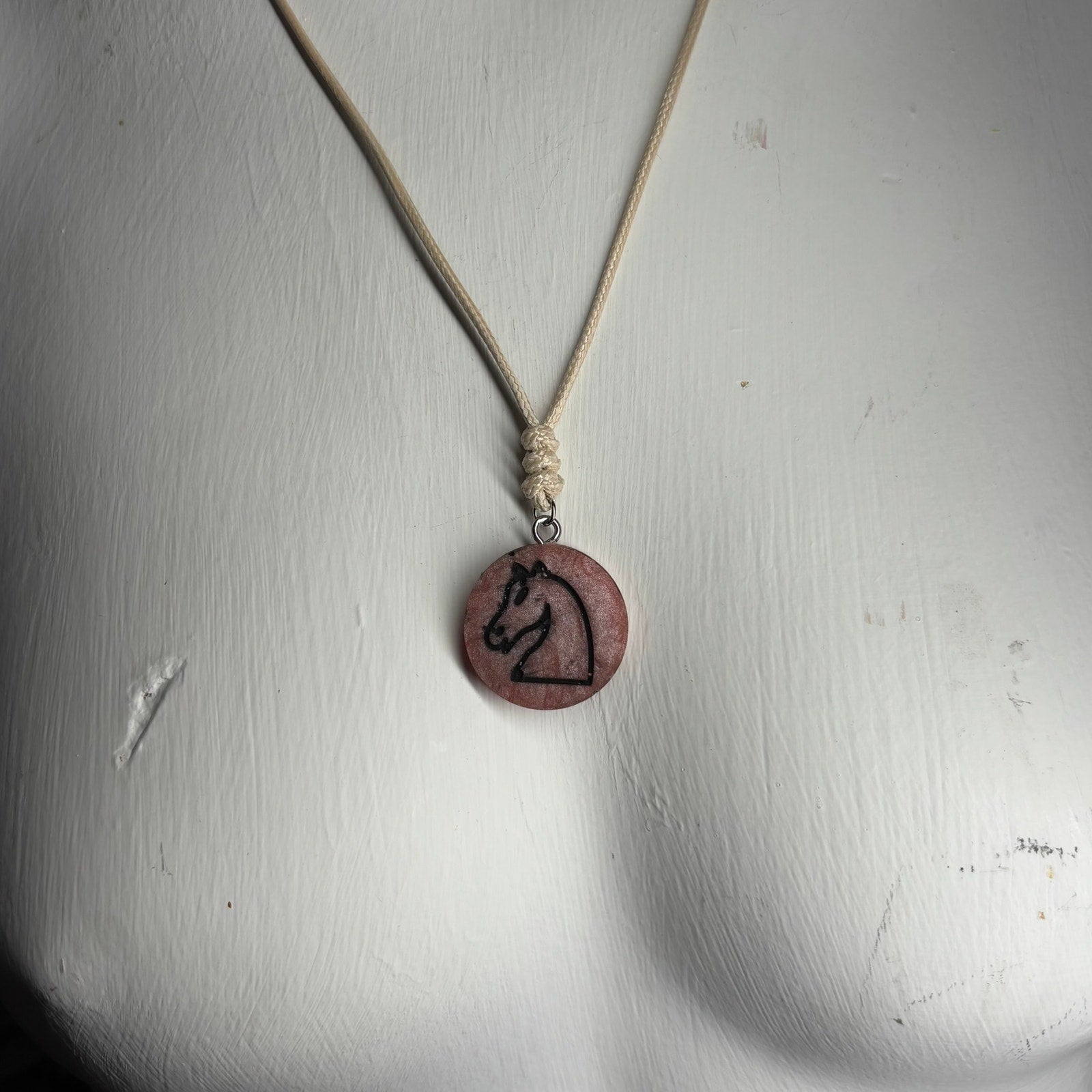 Cream Peach Knight - Handmade Resin Chess Necklace