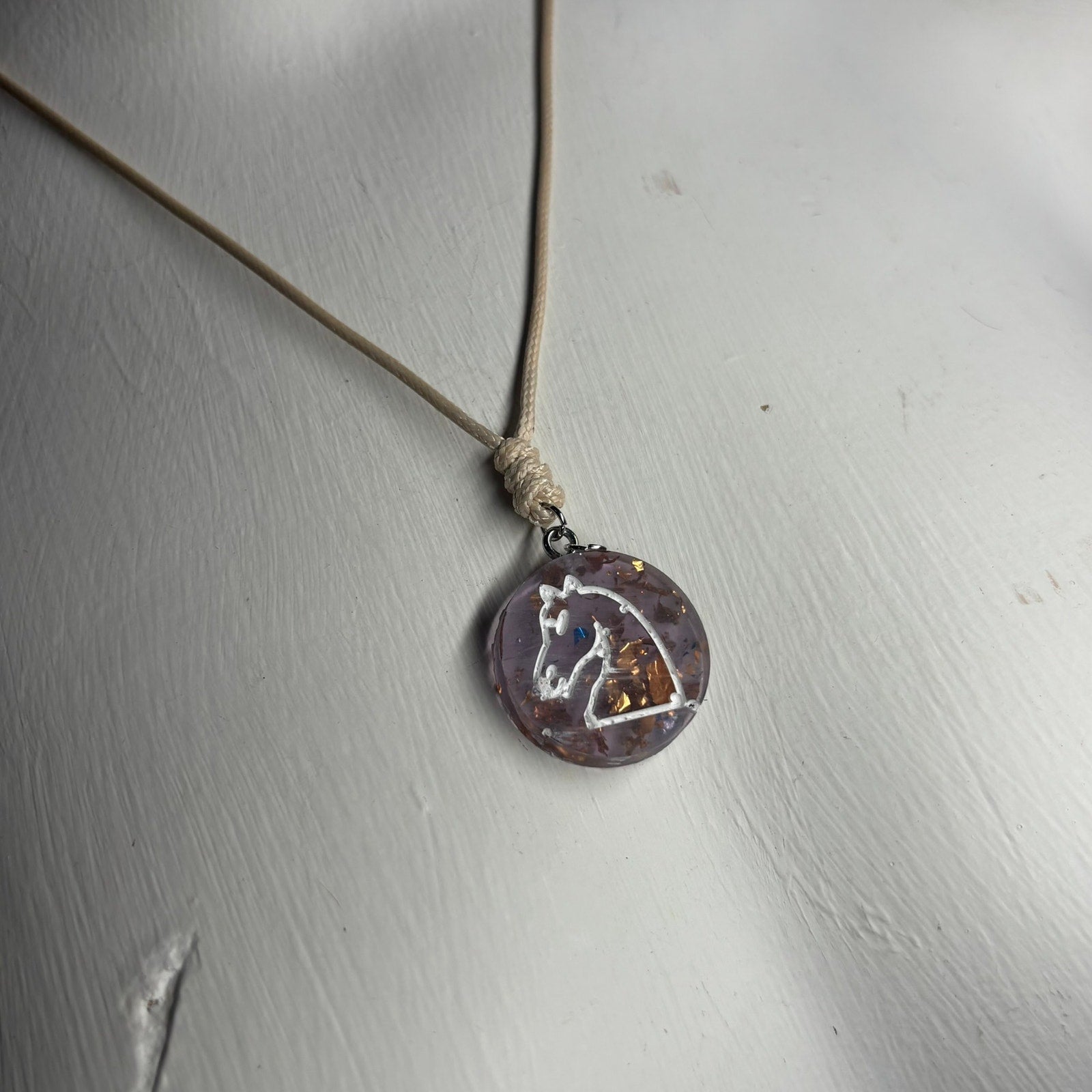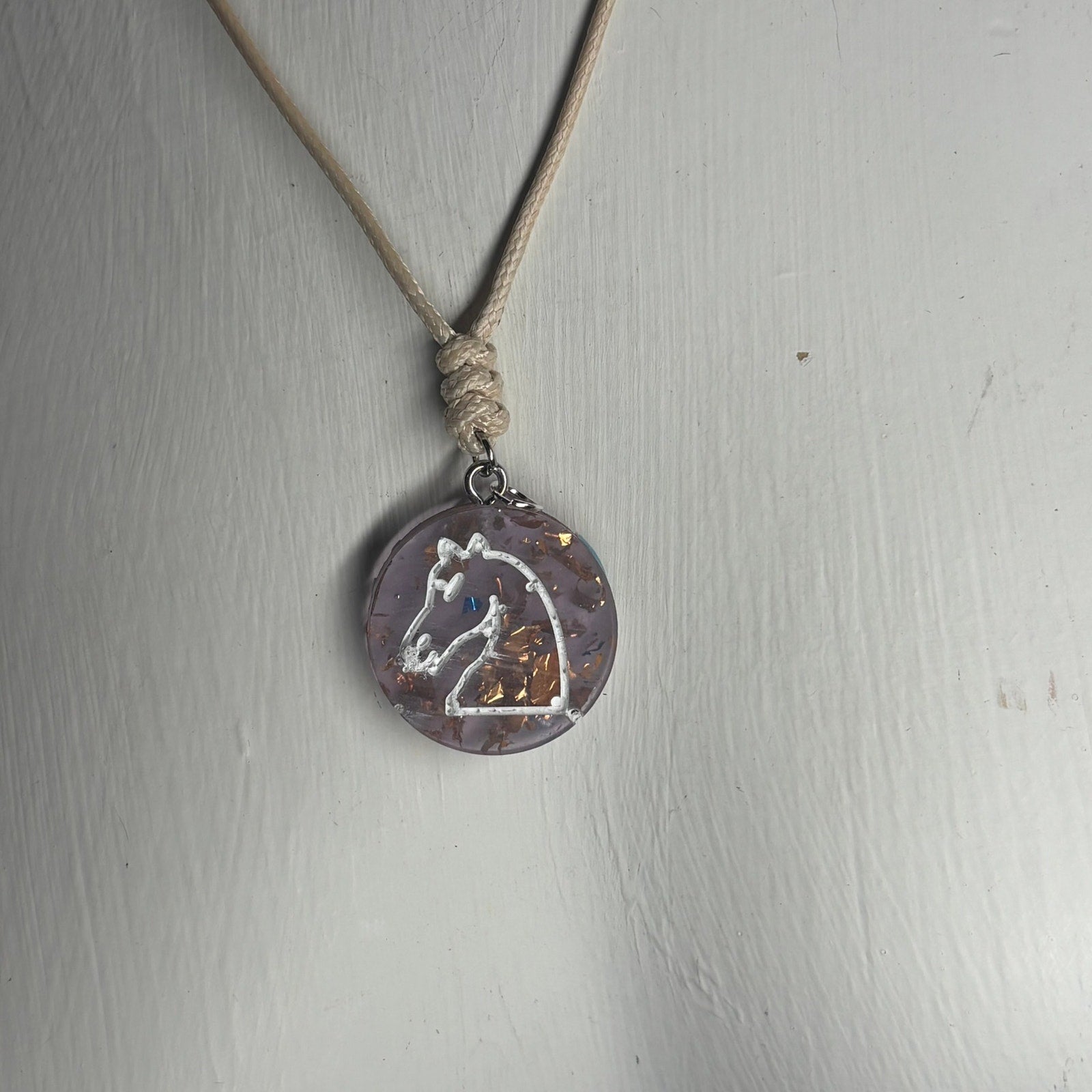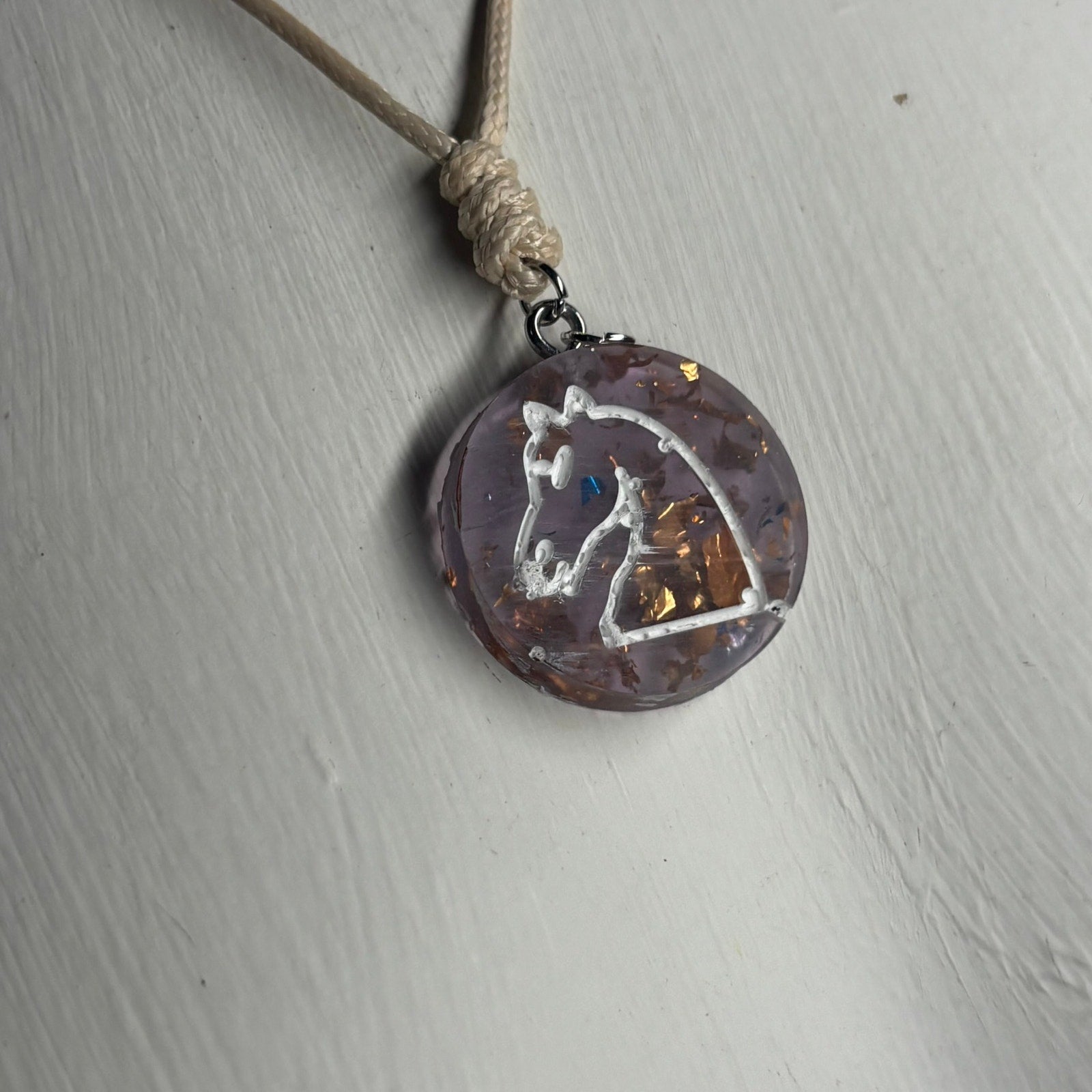 Cream Purple Knight - Handmade Resin Chess Necklace