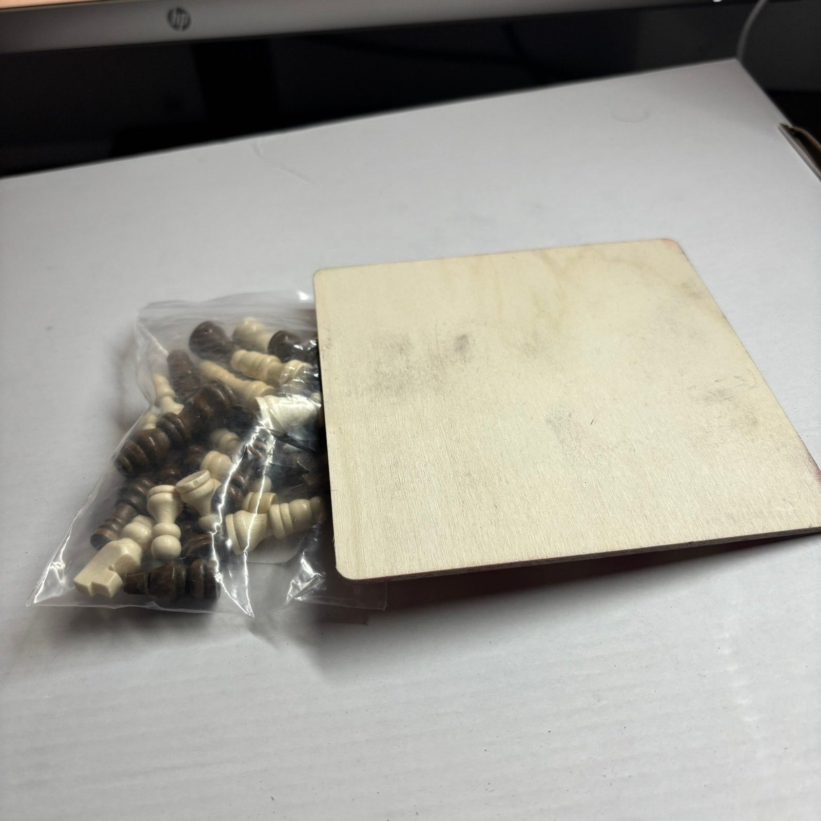The board is made of a thin piece of wood and has been lovingly hand-painted, giving it a unique and charming touch. This chess set is perfect for collectors, travel enthusiasts, or anyone who appreciates a touch of whimsy.