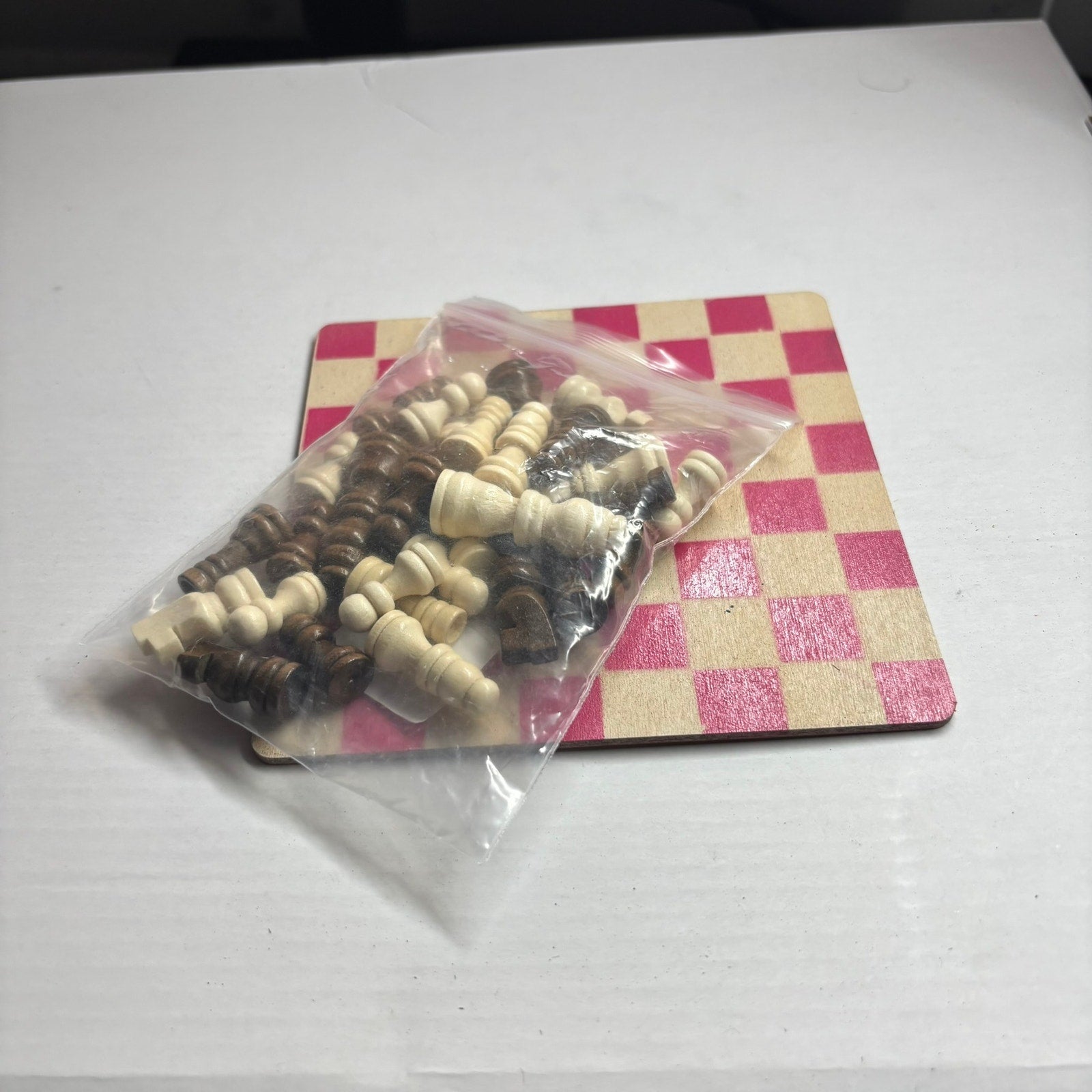 The chess pieces are small to match the board size, making it a delightful miniature set.