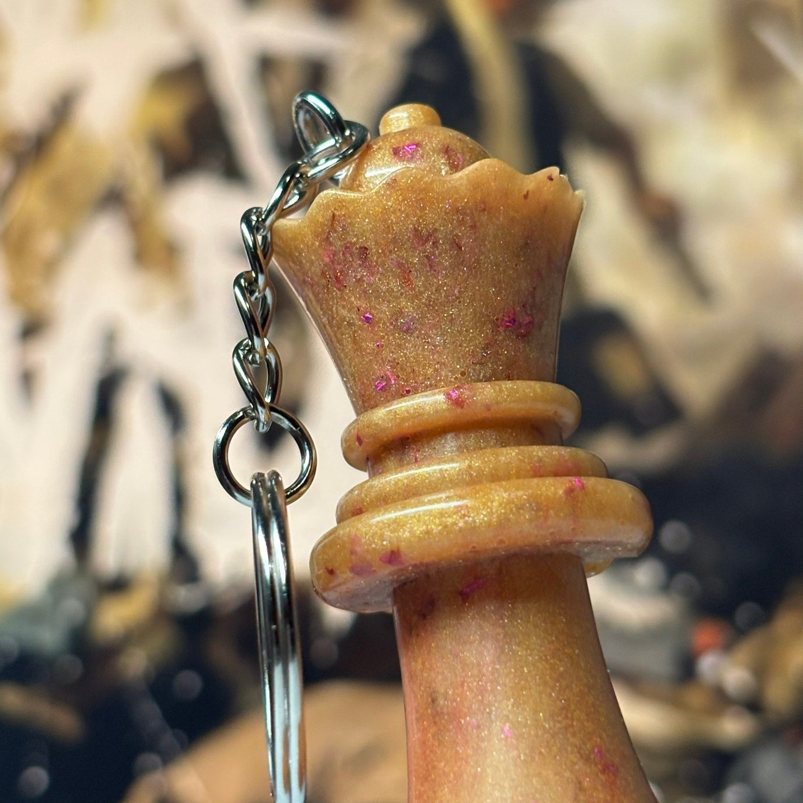Perfect as a gift for yourself or a loved one. Be sure to check out my website for more one-of-a-kind resin chess keychains!
