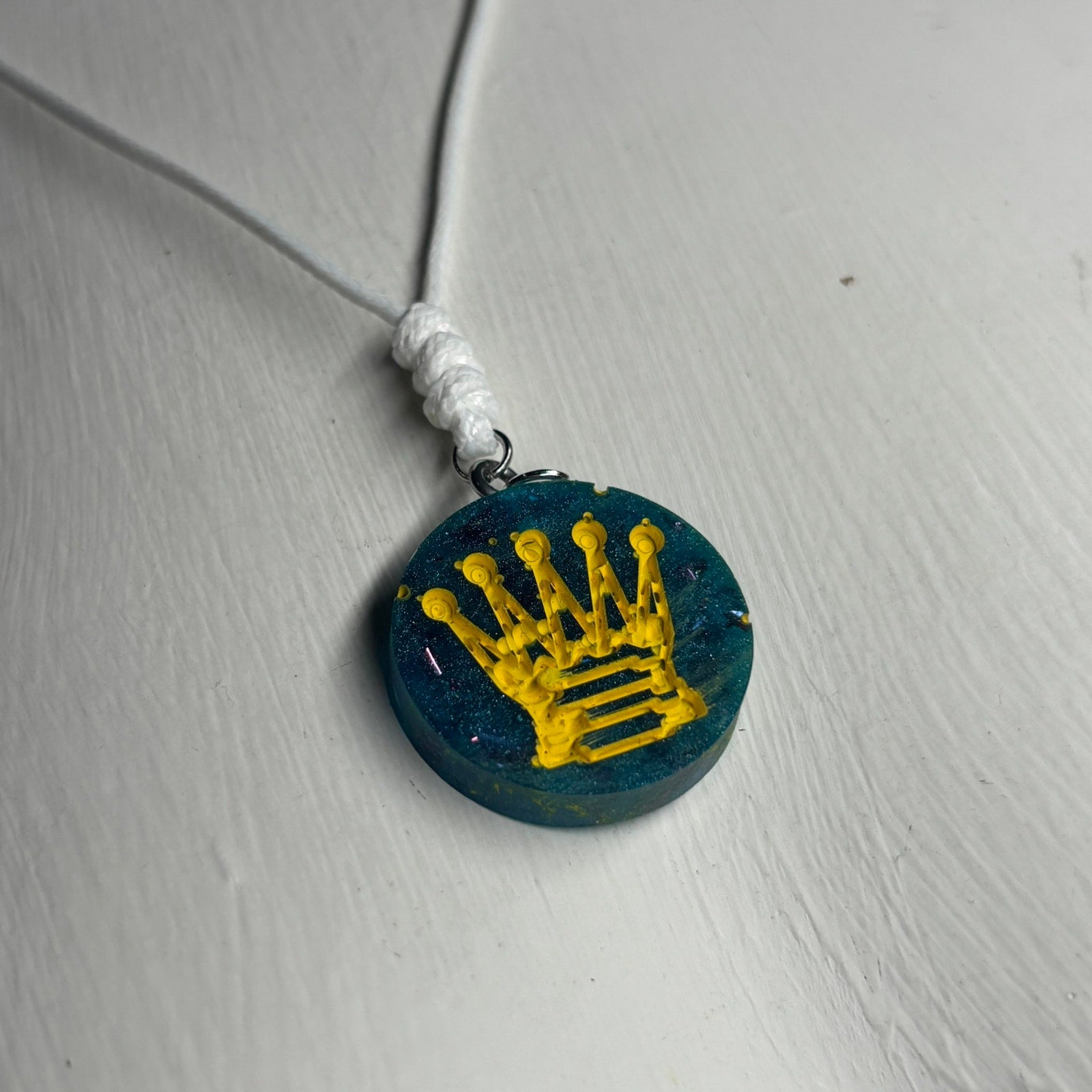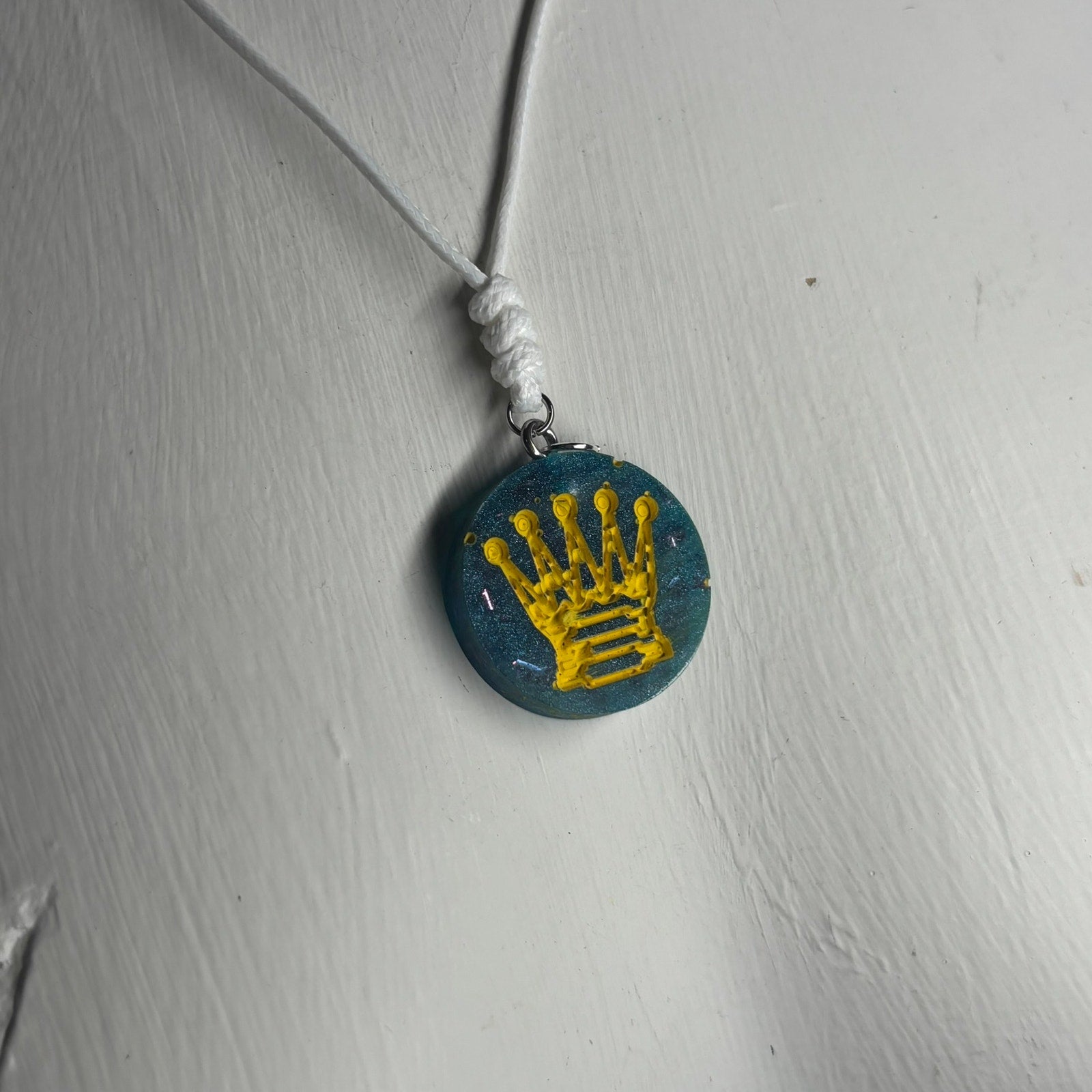 Crystal Blue Queen - Handmade Resin Chess Necklace