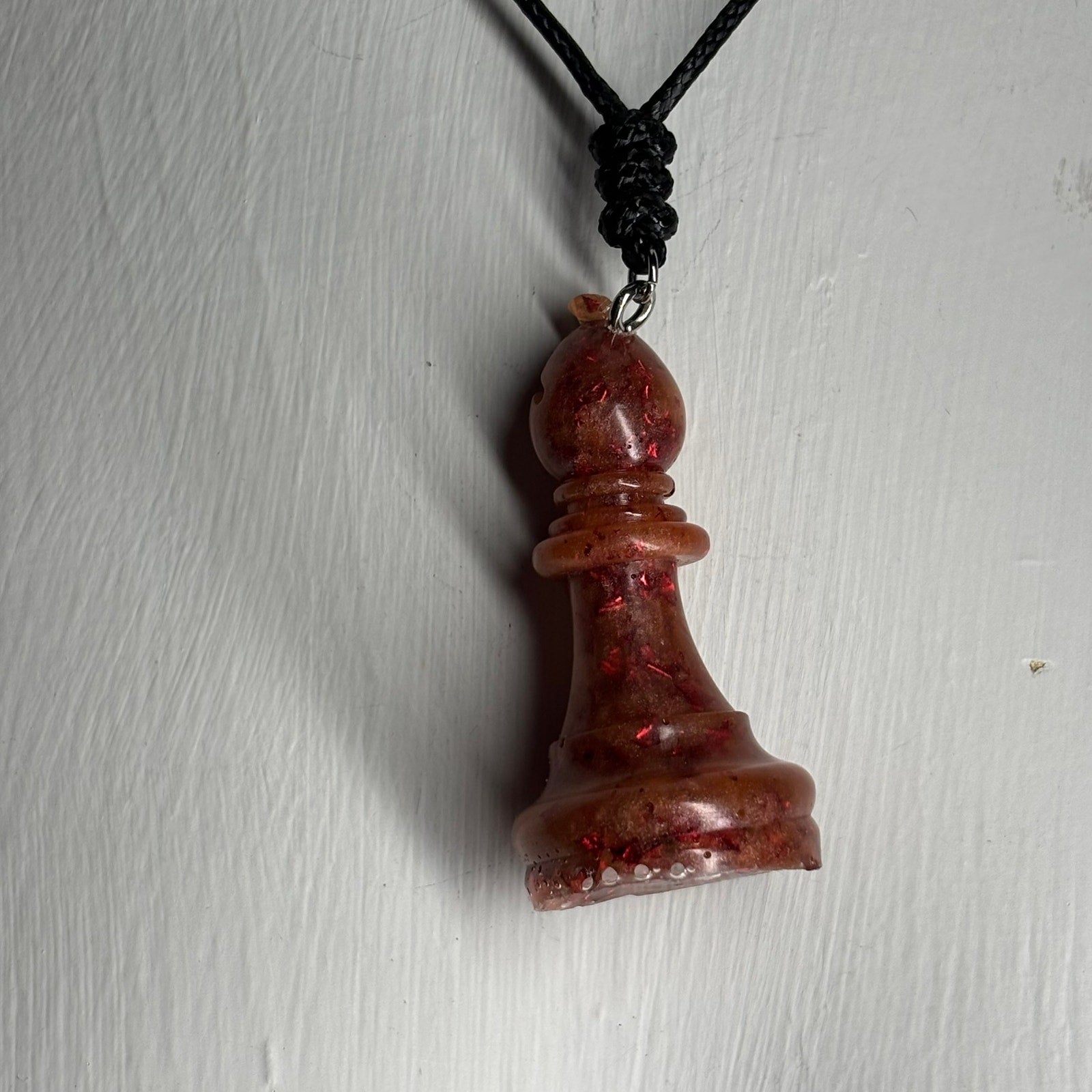 Add a touch of strategy and style to your look with this unique, handcrafted chess pendant necklace! Each necklace features a resin chess piece pendant, lovingly handmade to ensure quality and individuality.