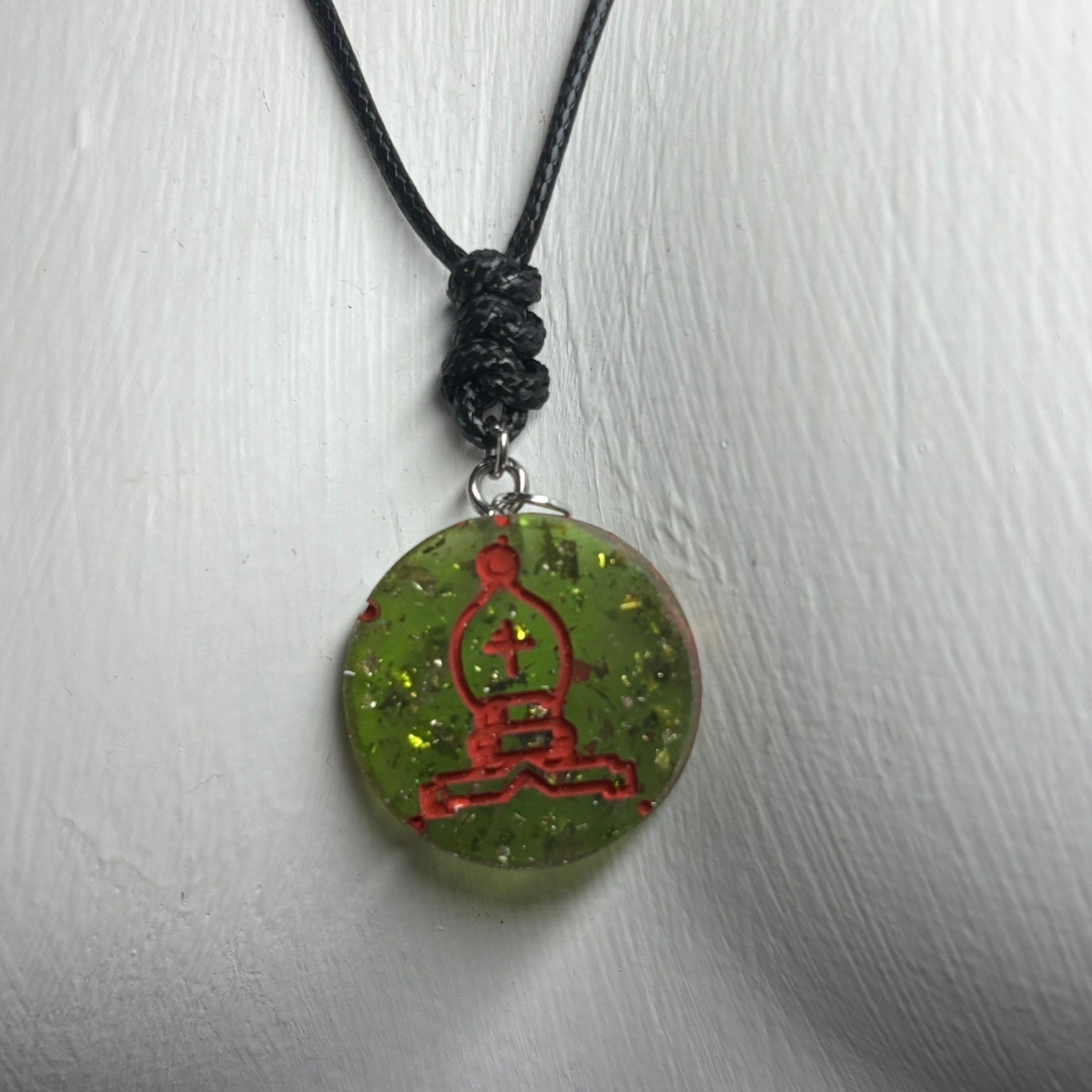 Crystal Green Bishop - Handmade Resin Chess Necklace