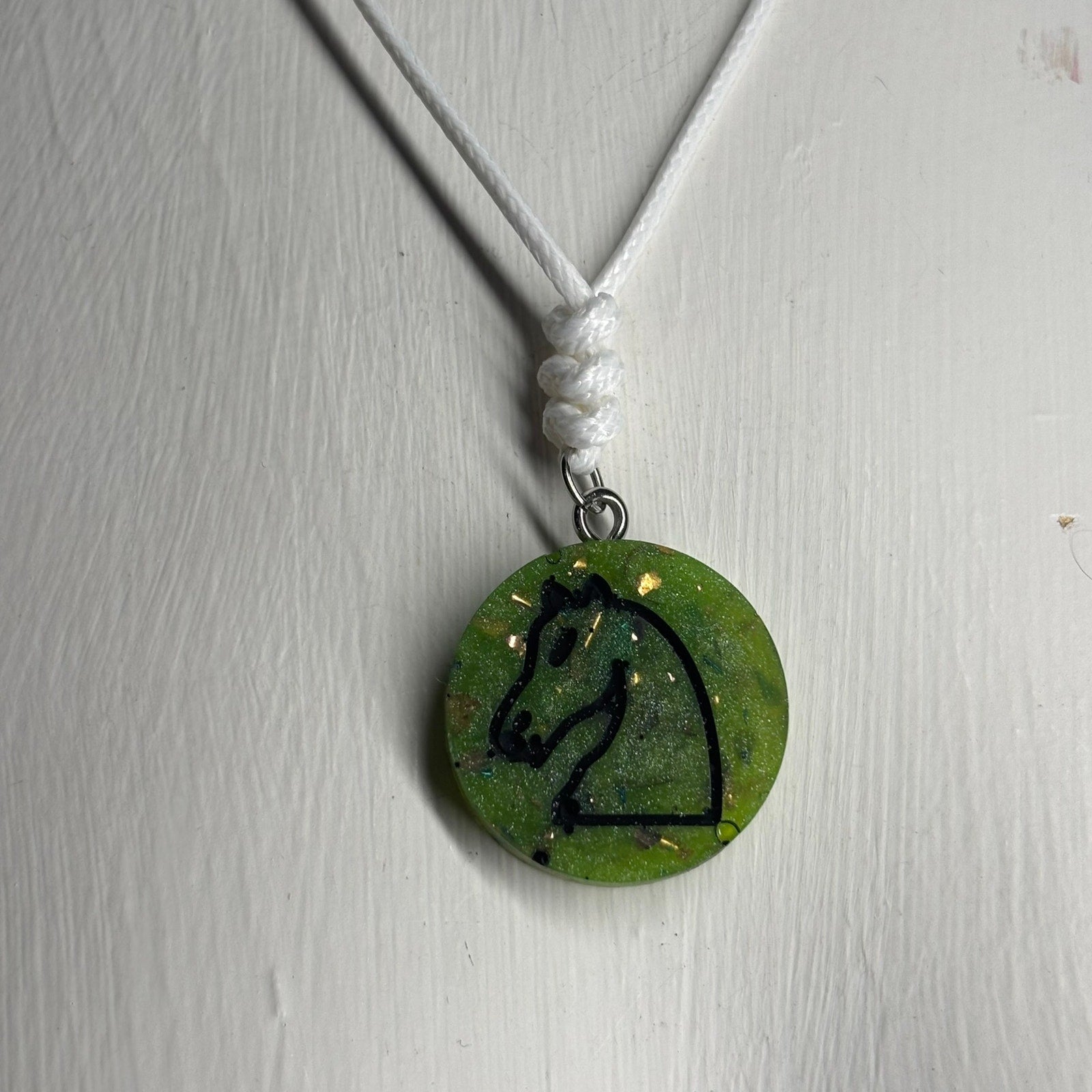 Crystal Green Knight - Handmade Resin Chess Necklace