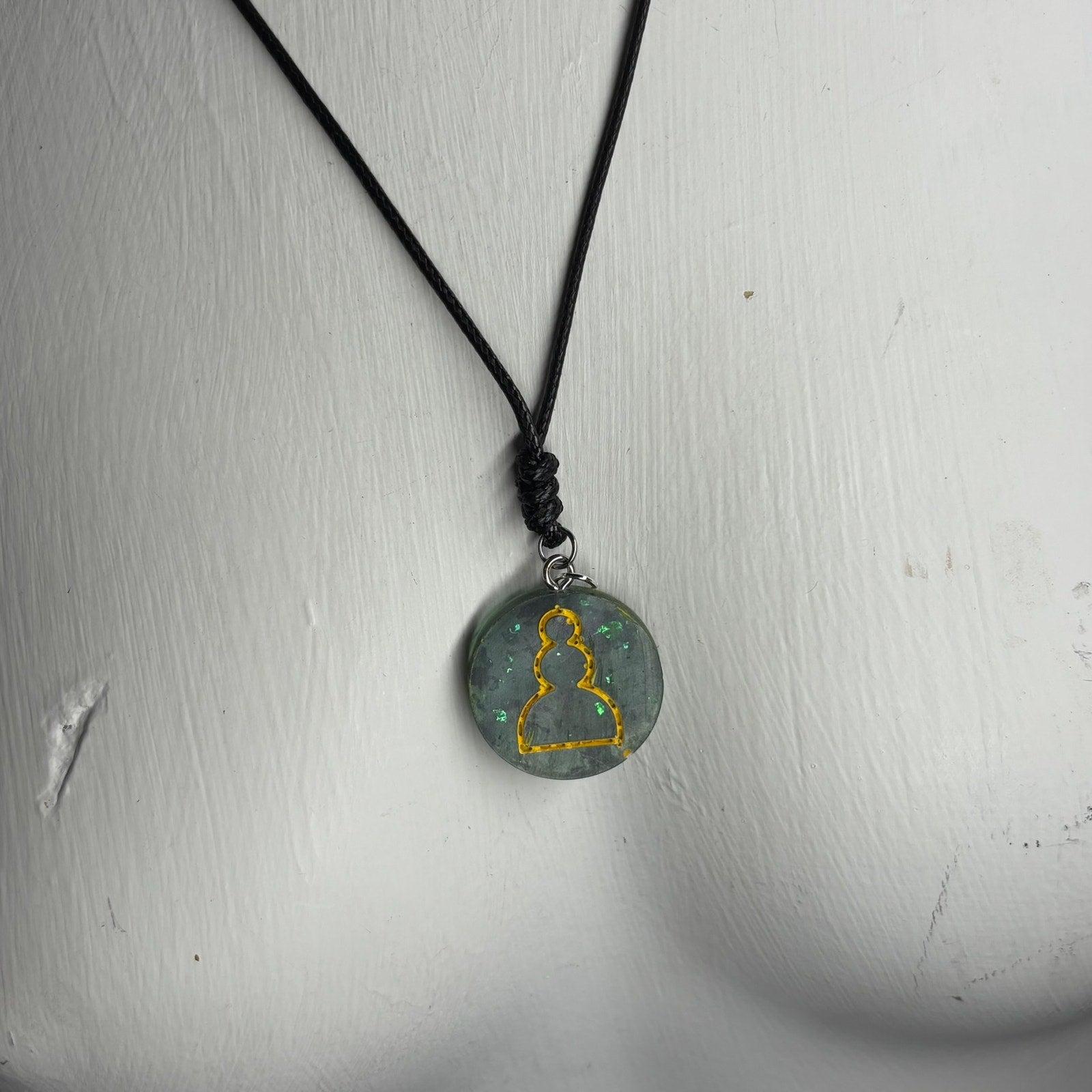 Crystal Green Pawn - Handmade Resin Chess Necklace