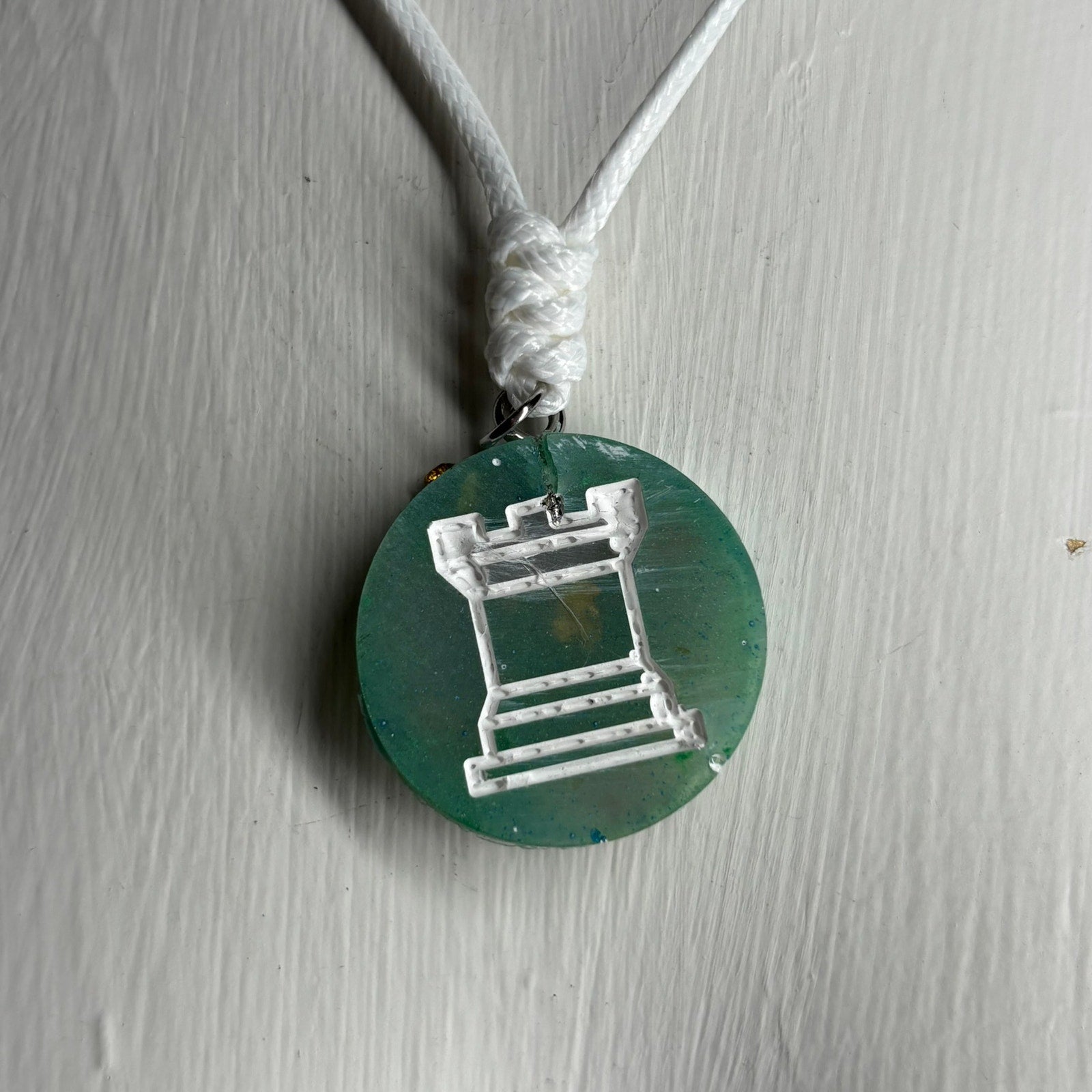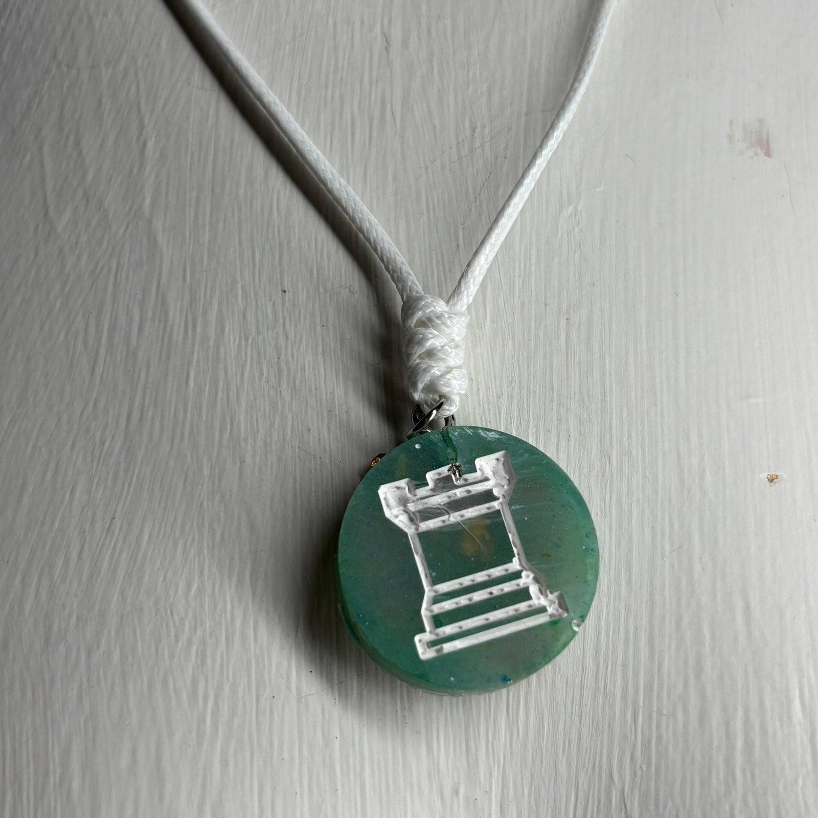 Crystal Green Rook - Handmade Resin Chess Necklace