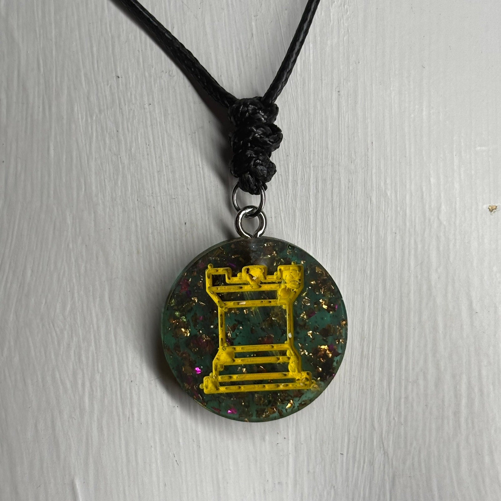 Crystal Green Rook - Handmade Resin Chess Necklace