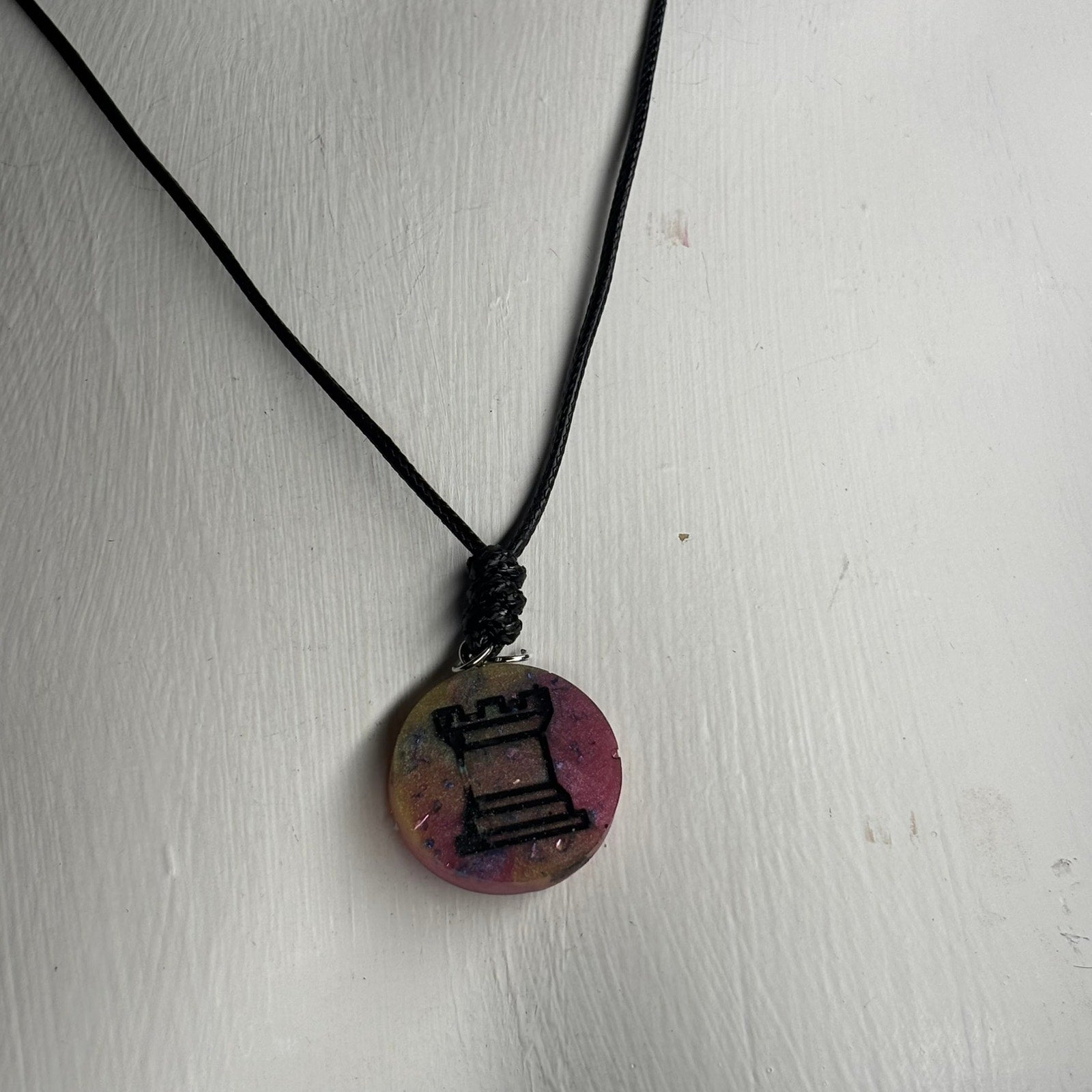 Crystal Pink Rook - Handmade Resin Chess Necklace