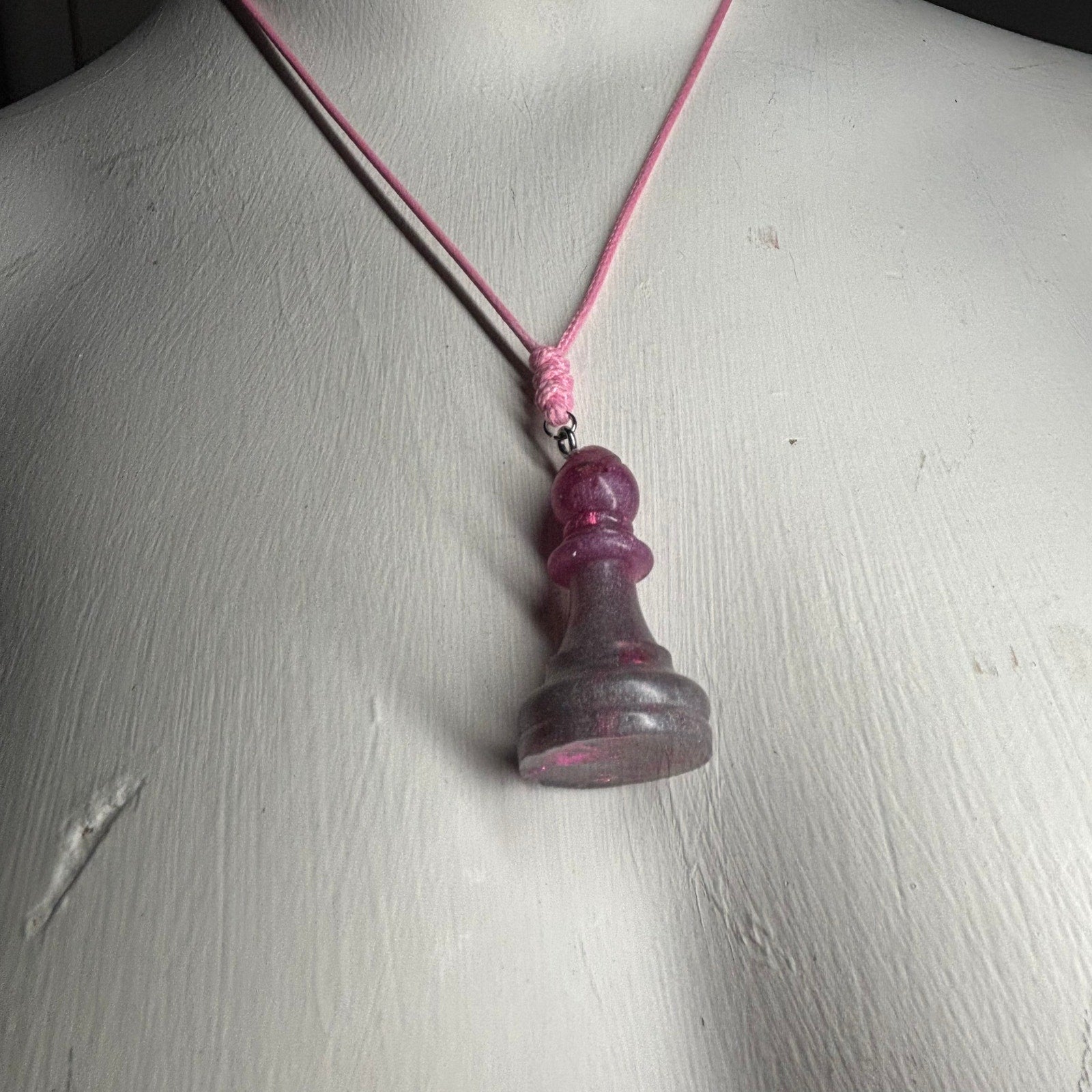 Add a touch of strategy and style to your look with this unique, handcrafted chess pendant necklace! Each necklace features a resin chess piece pendant, lovingly handmade to ensure quality and individuality.