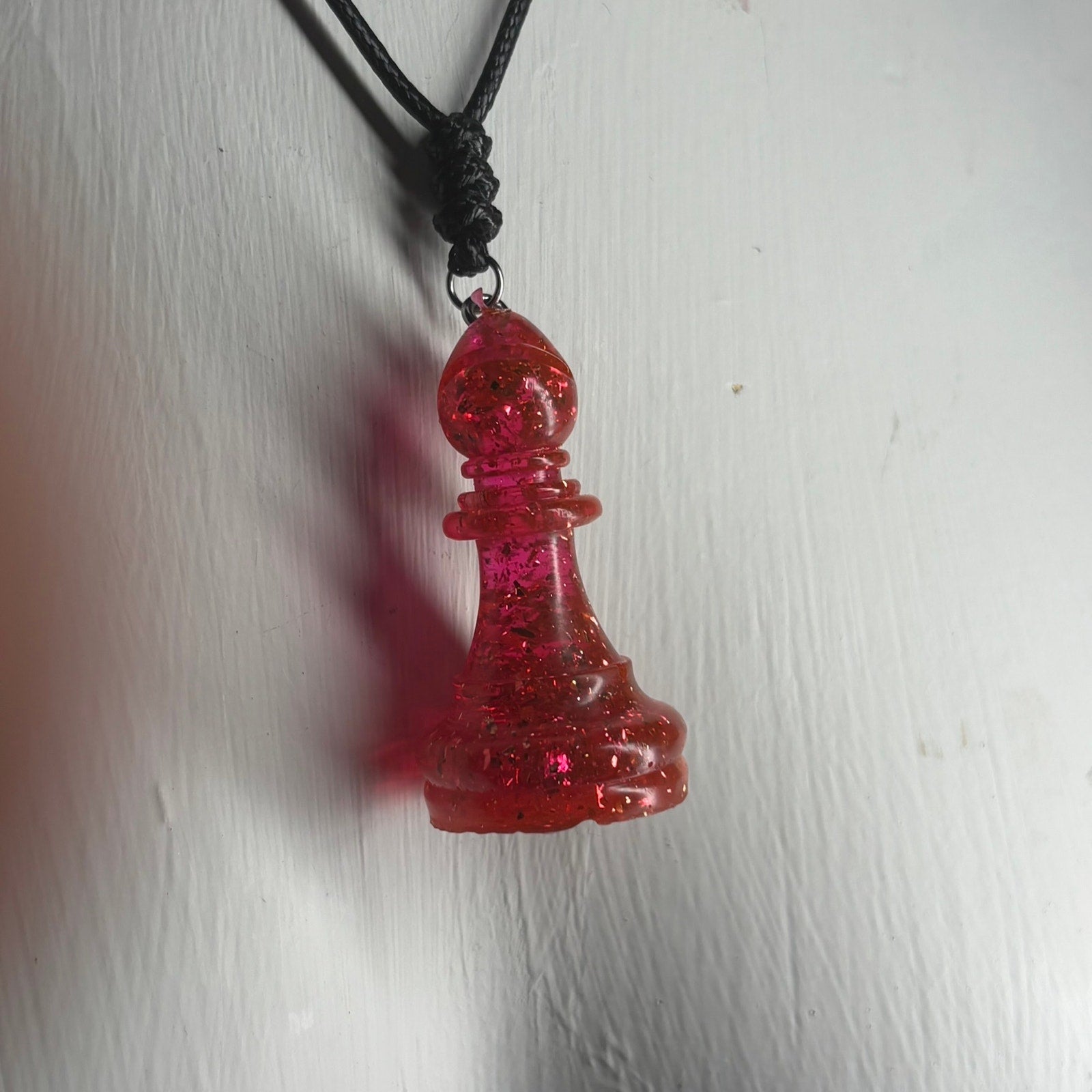 Crystal Red Bishop - Handmade Resin Chess Necklace