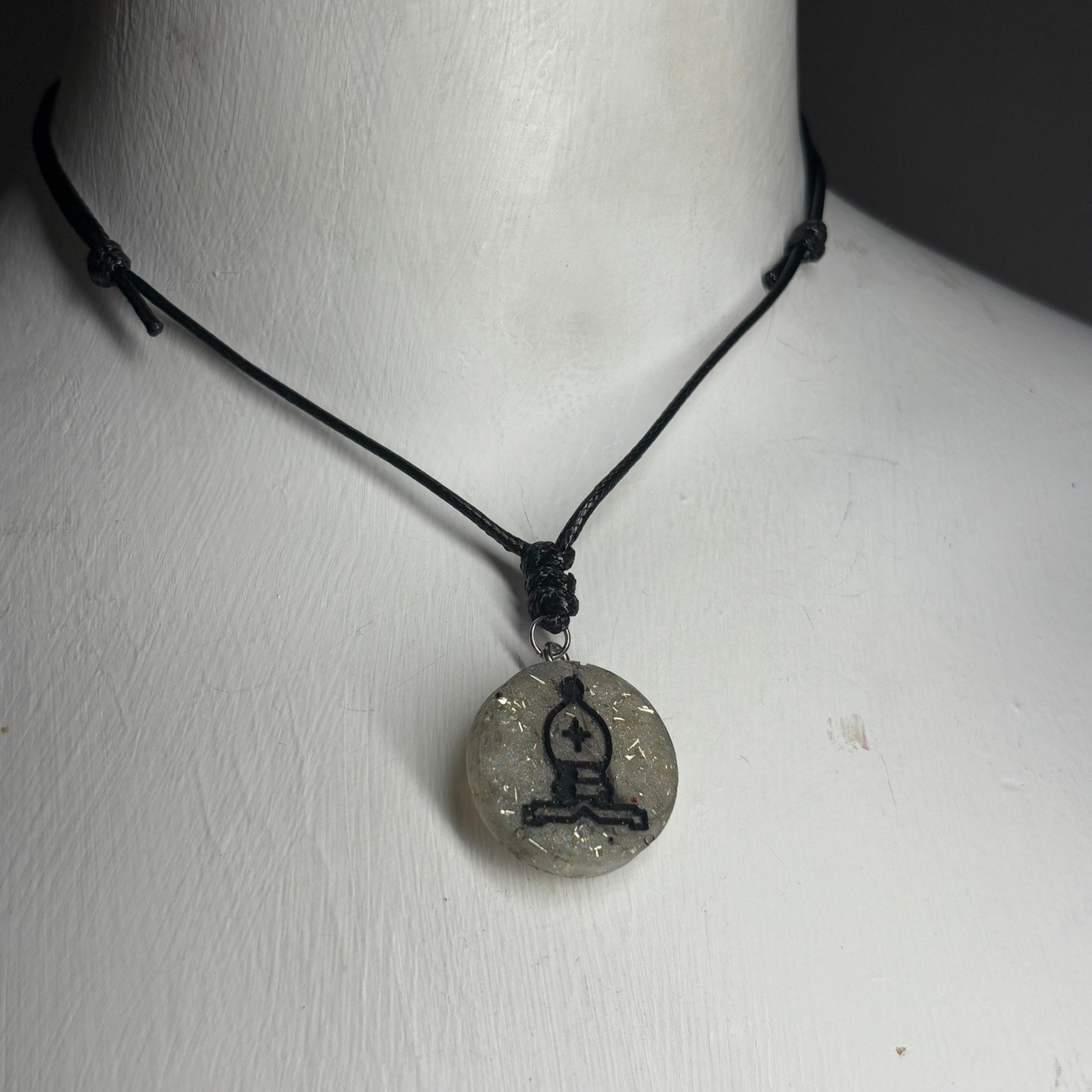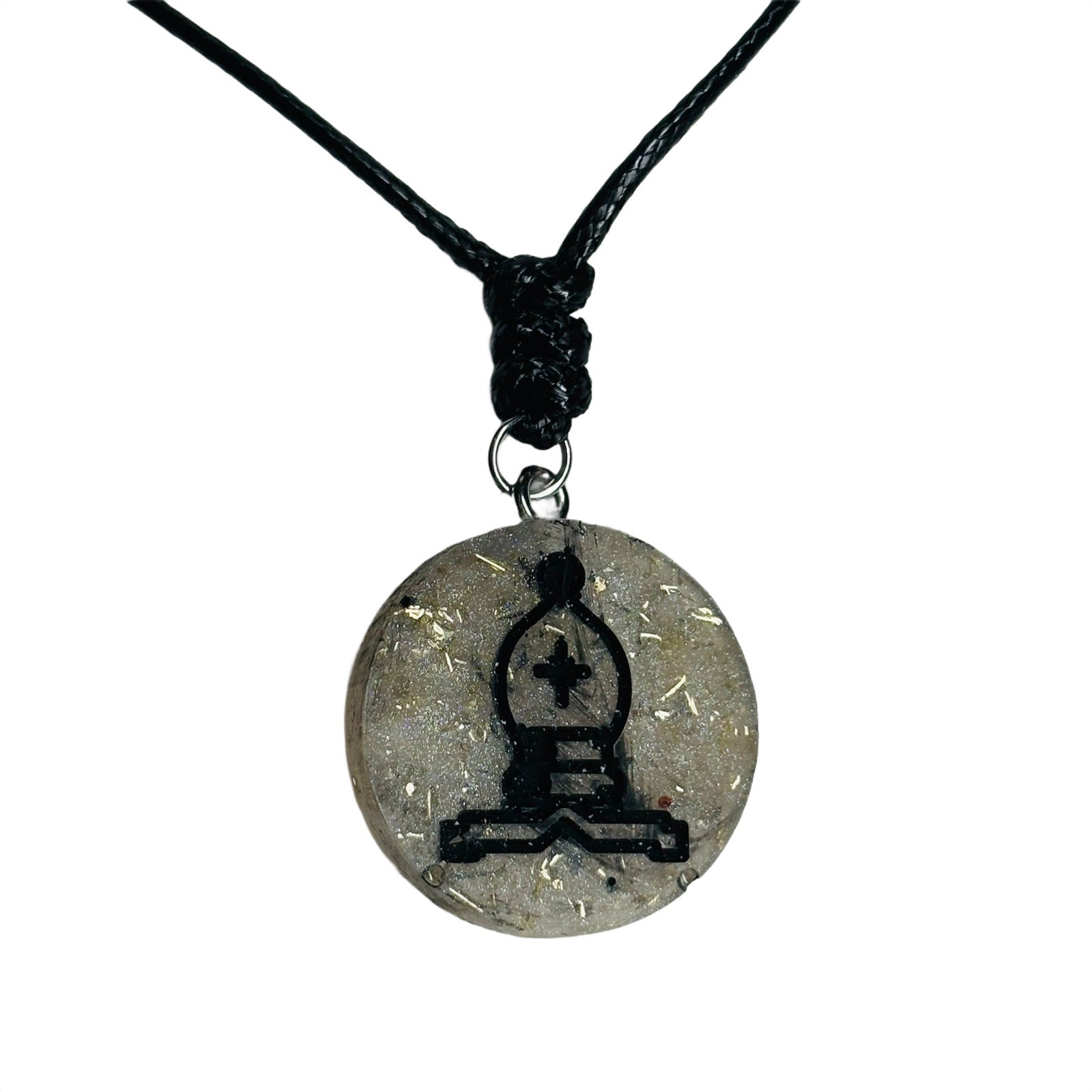 Crystal White Bishop - Handmade Resin Chess Necklace