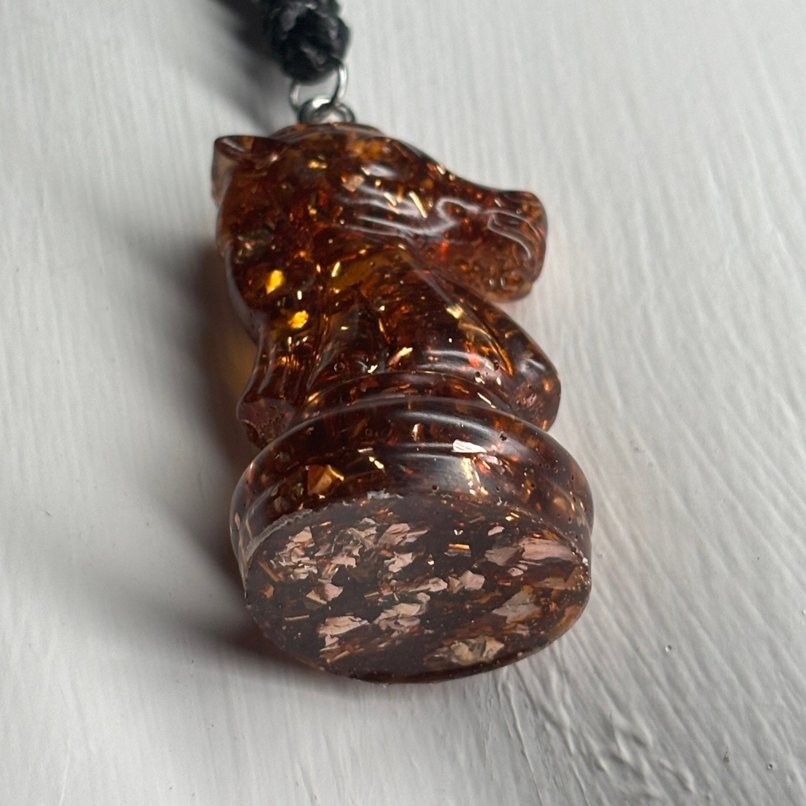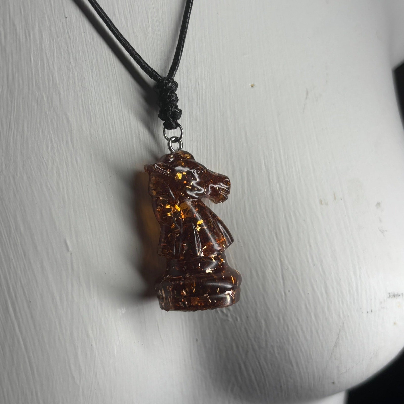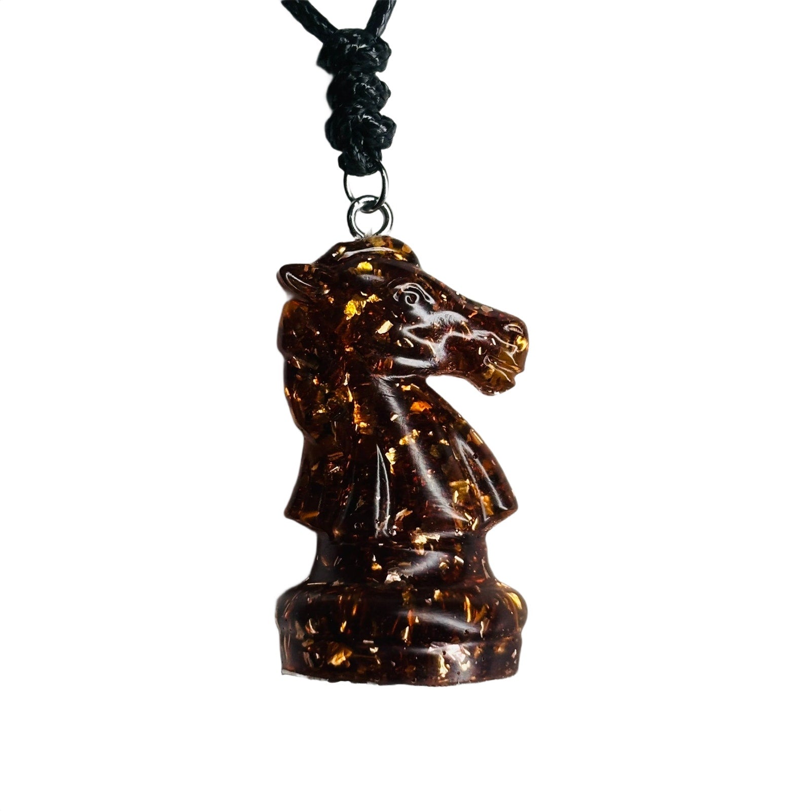 Dark Amber Knight - Handmade Resin Chess Necklace