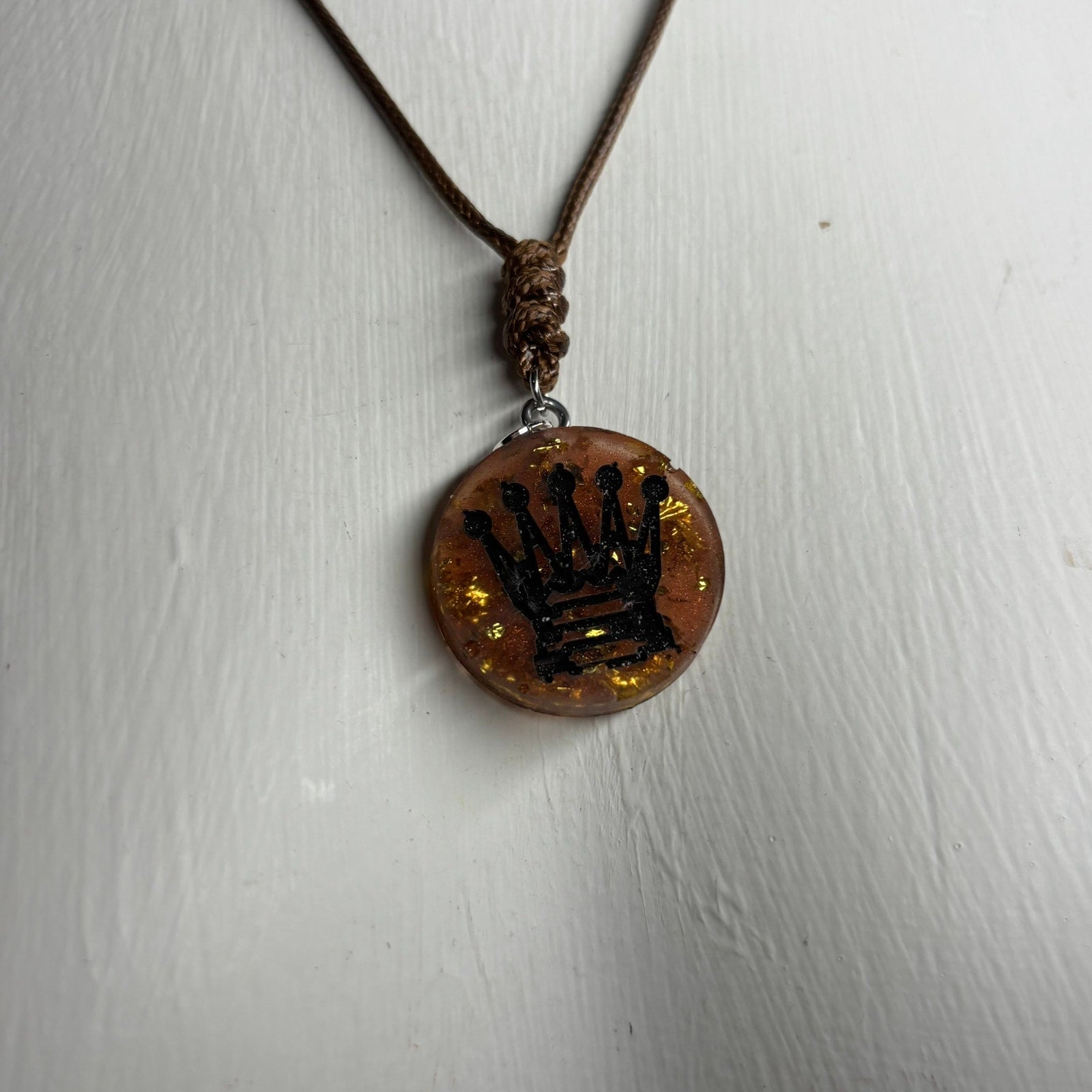 Dark Amber Queen - Handmade Resin Chess Necklace