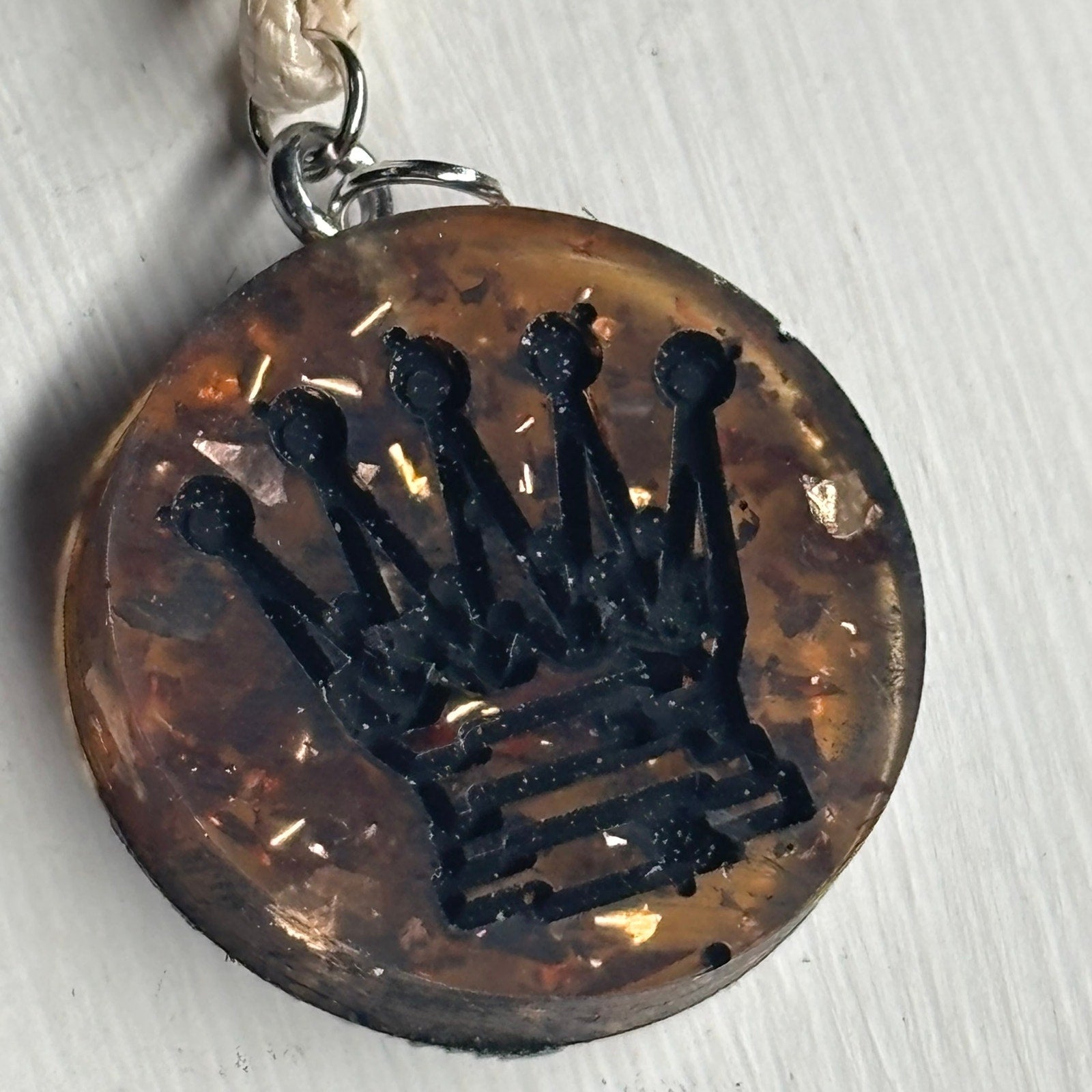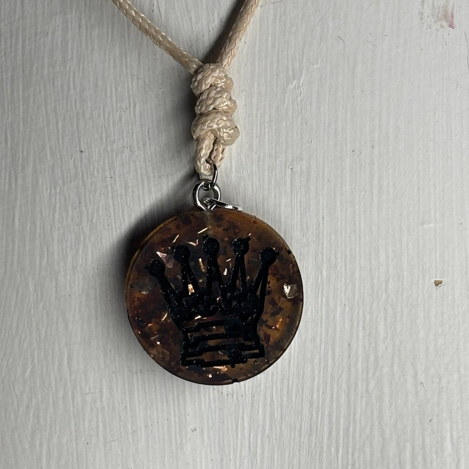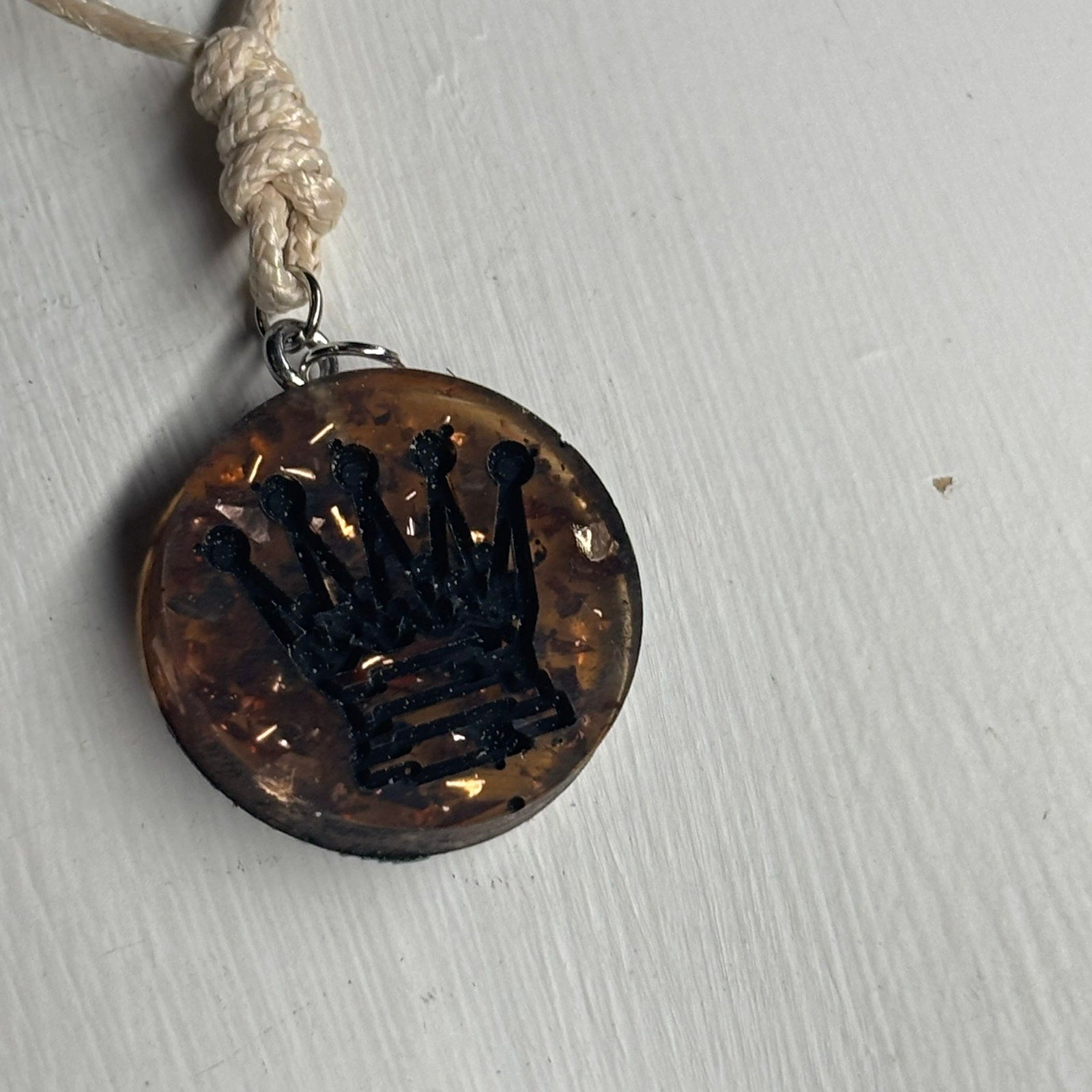 Dark Amber Vintage Queen - Handmade Resin Chess Necklace