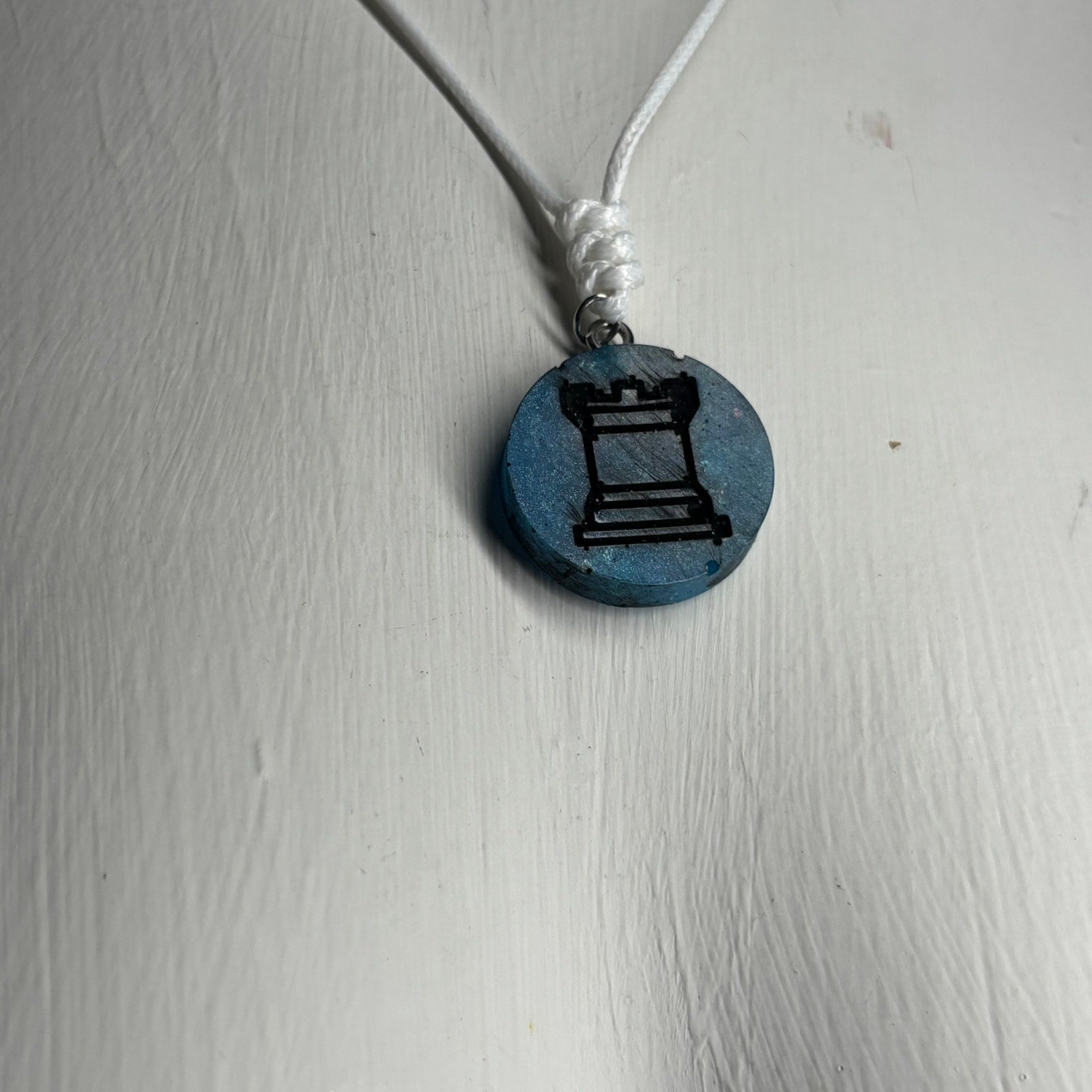Dark Blue Rook - Handmade Resin Chess Necklace