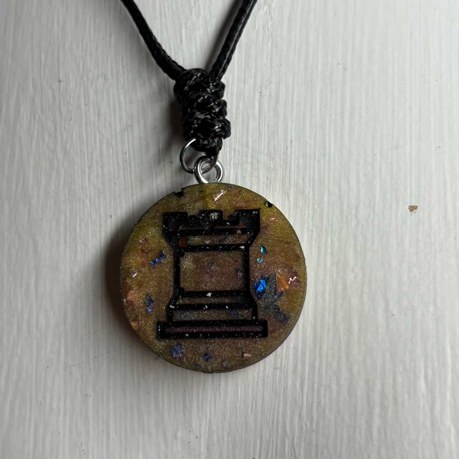 Dark Crystal Yellow Rook - Handmade Resin Chess Necklace