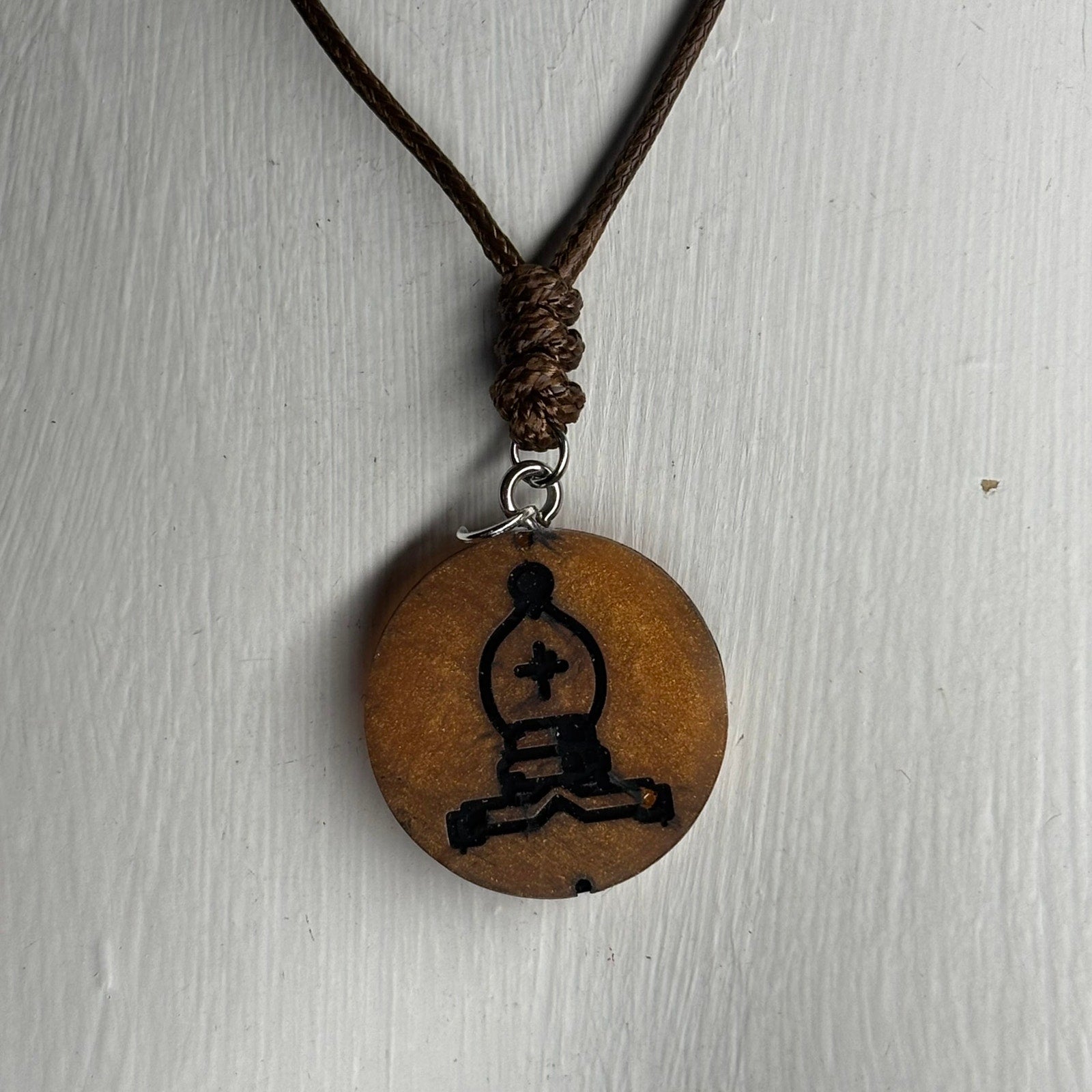 Dark Orange Bishop - Handmade Resin Chess Necklace