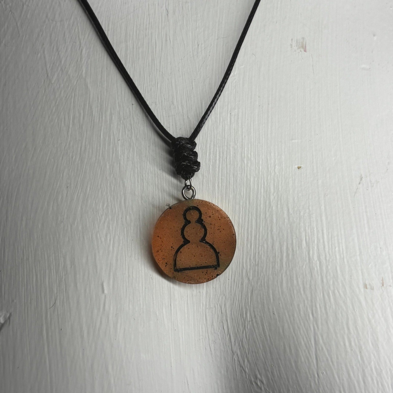 Dark Orange Pawn - Handmade Resin Chess Necklace