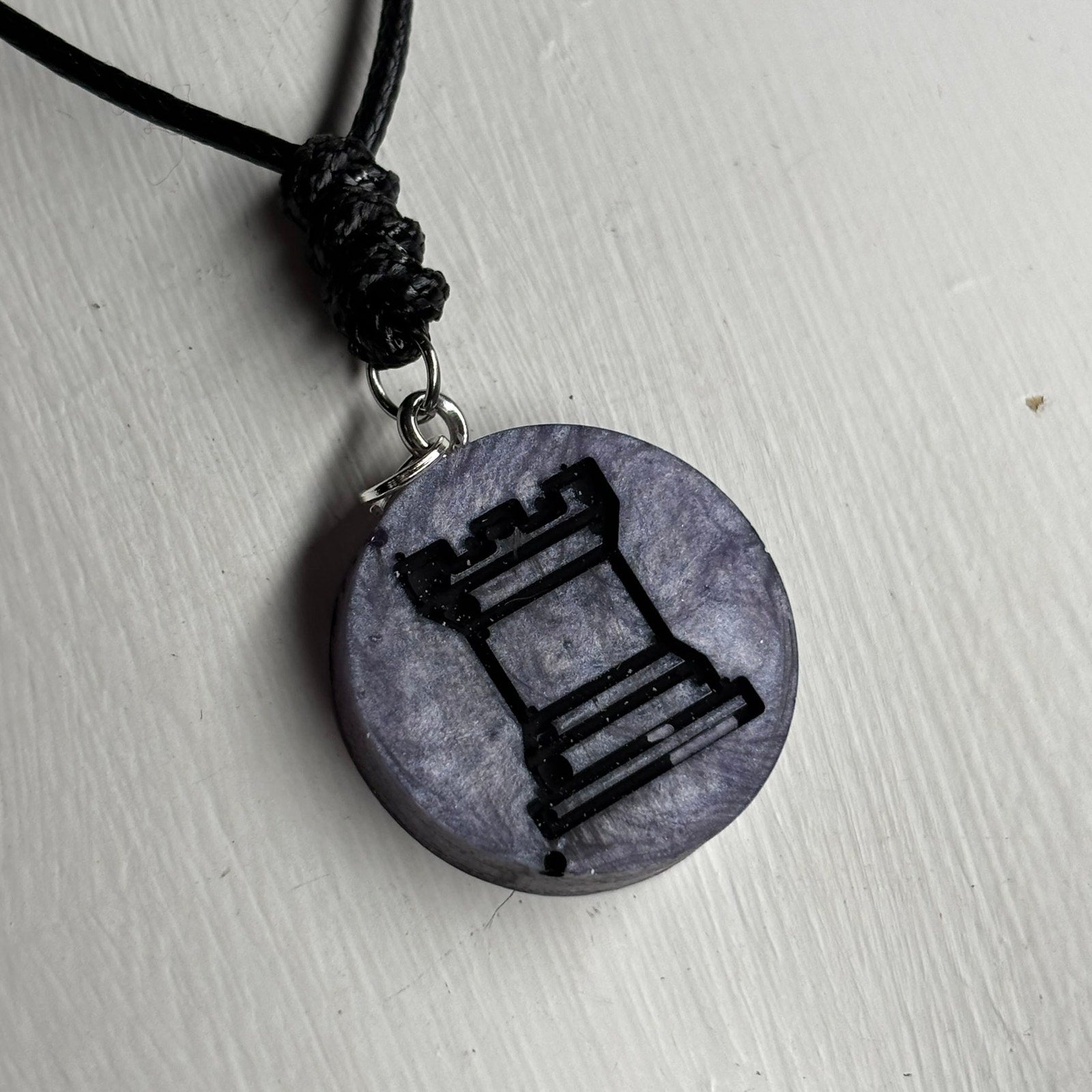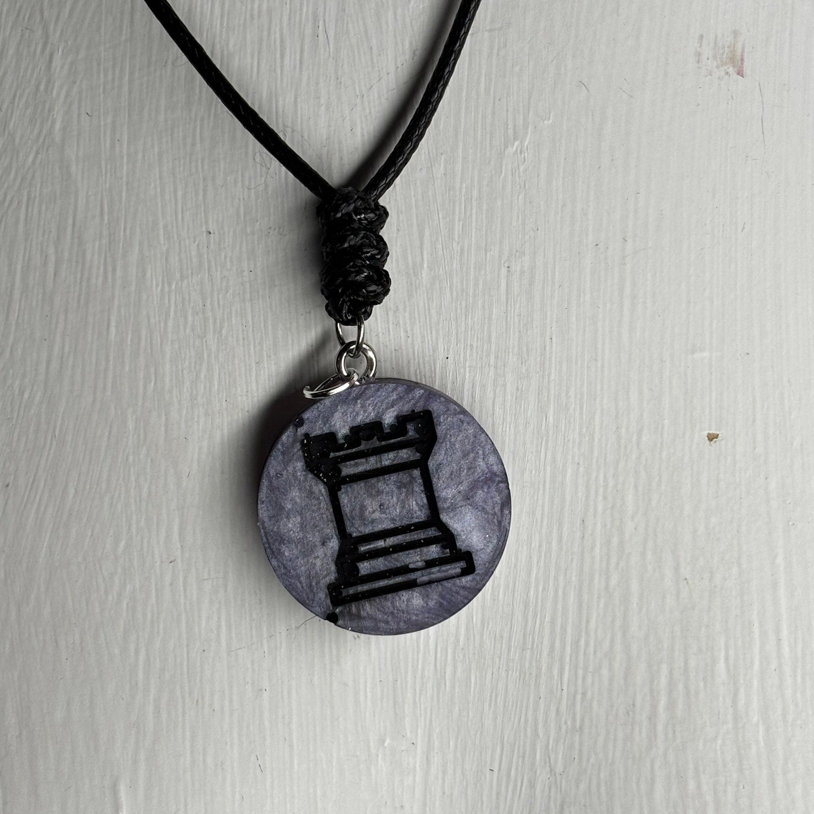 Dark Purple Rook - Handmade Resin Chess Necklace