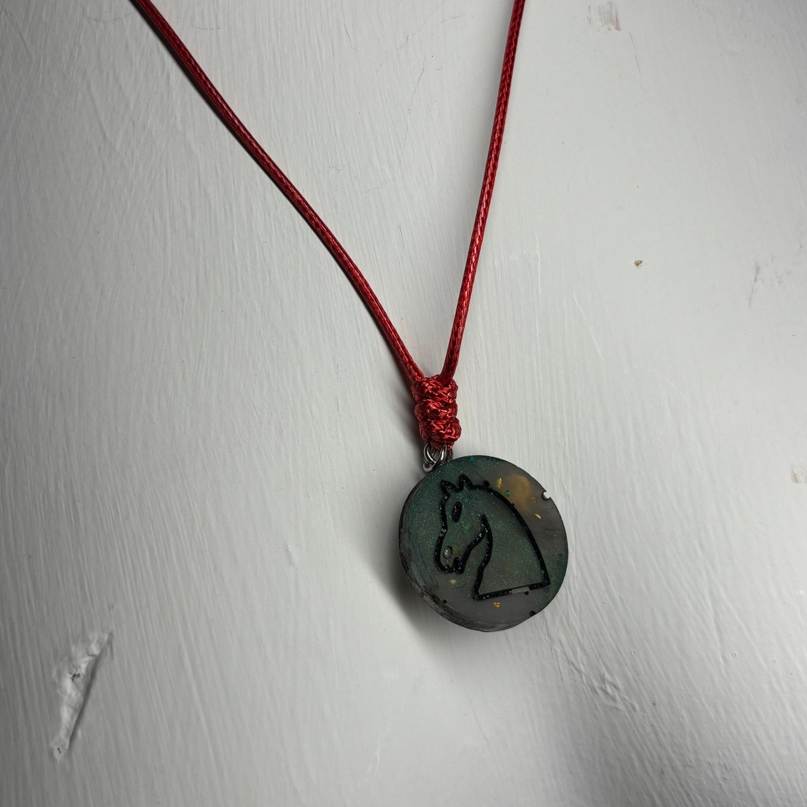 Dark Royal Knight - Handmade Resin Chess Necklace