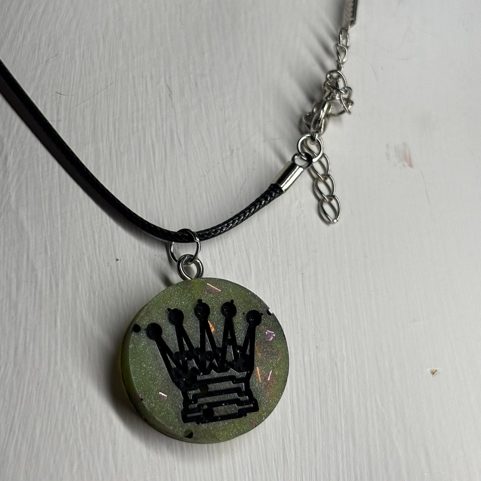 Dark Royalty Green Queen - Handmade Resin Chess Necklace