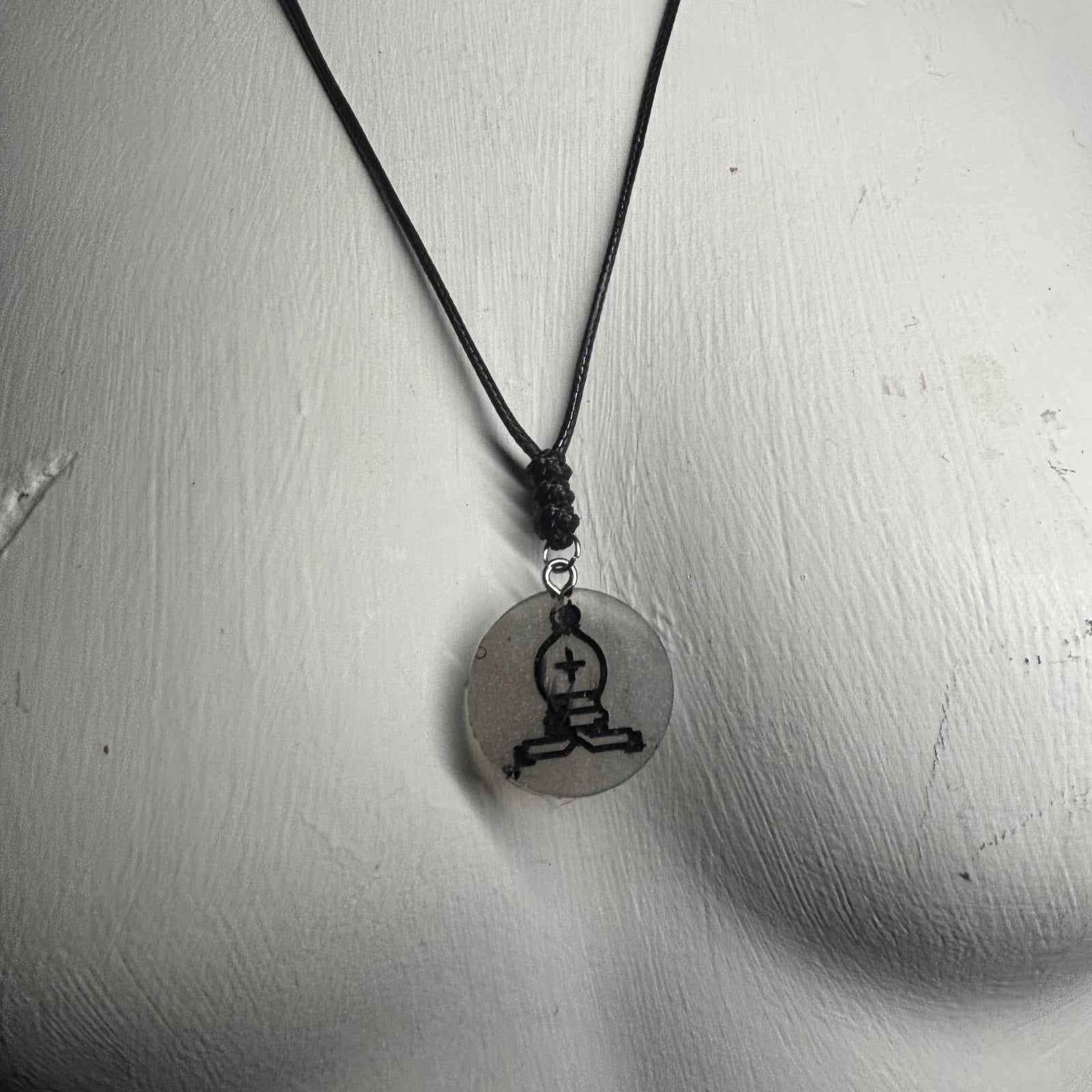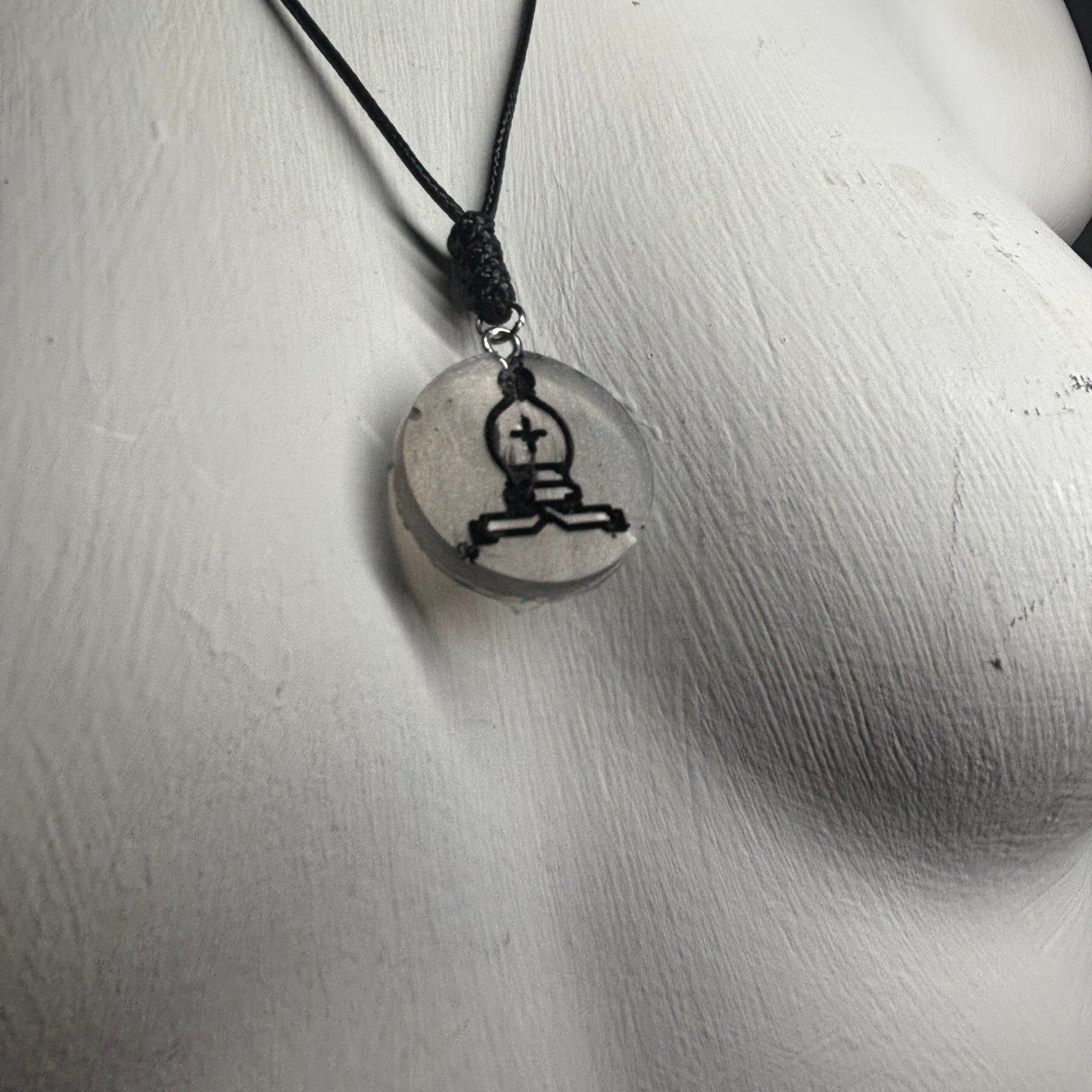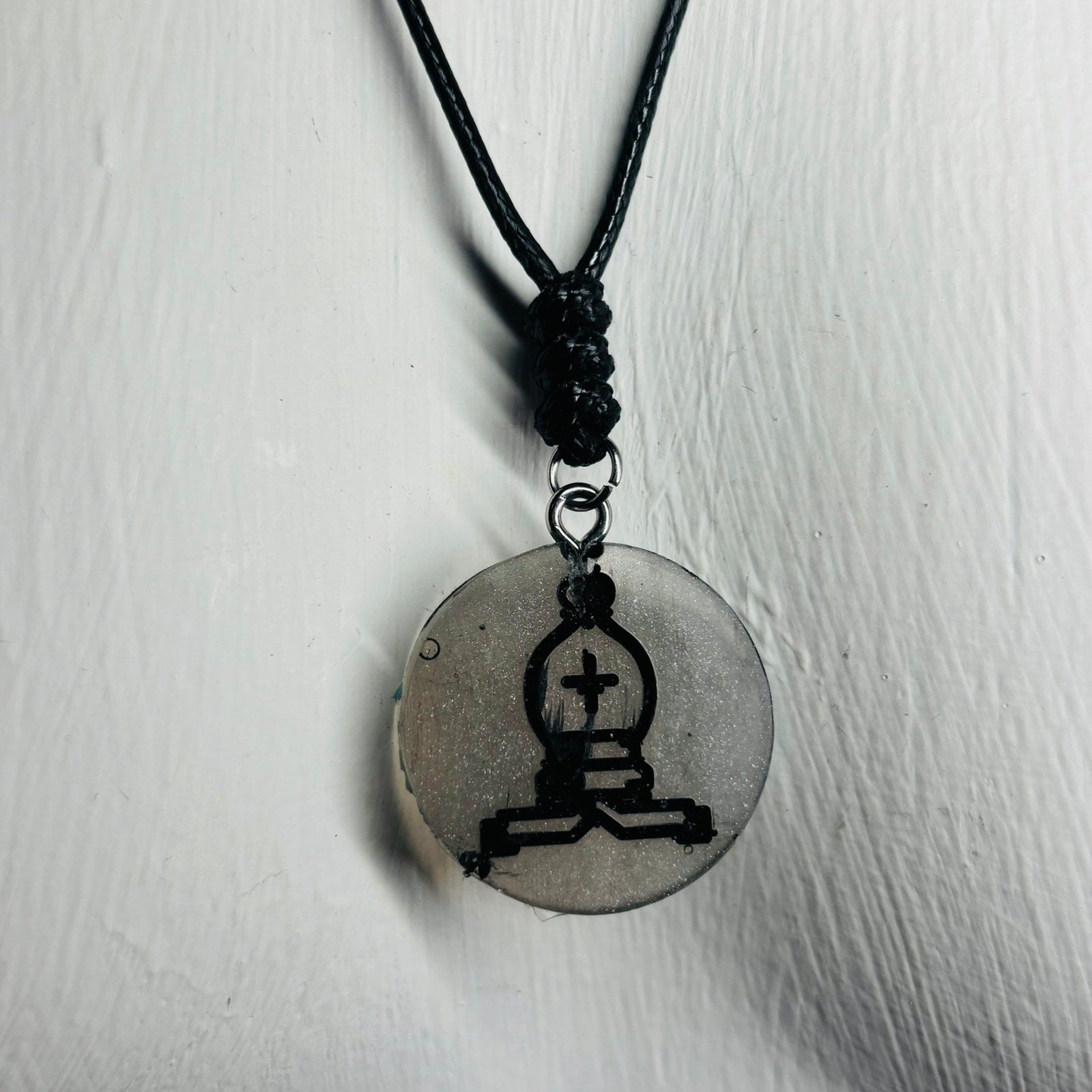 Dark Silver Bishop - Handmade Resin Chess Necklace