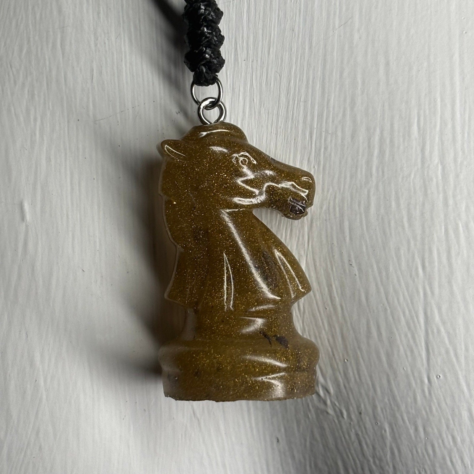 Dark Yellow Knight - Handmade Resin Chess Necklace