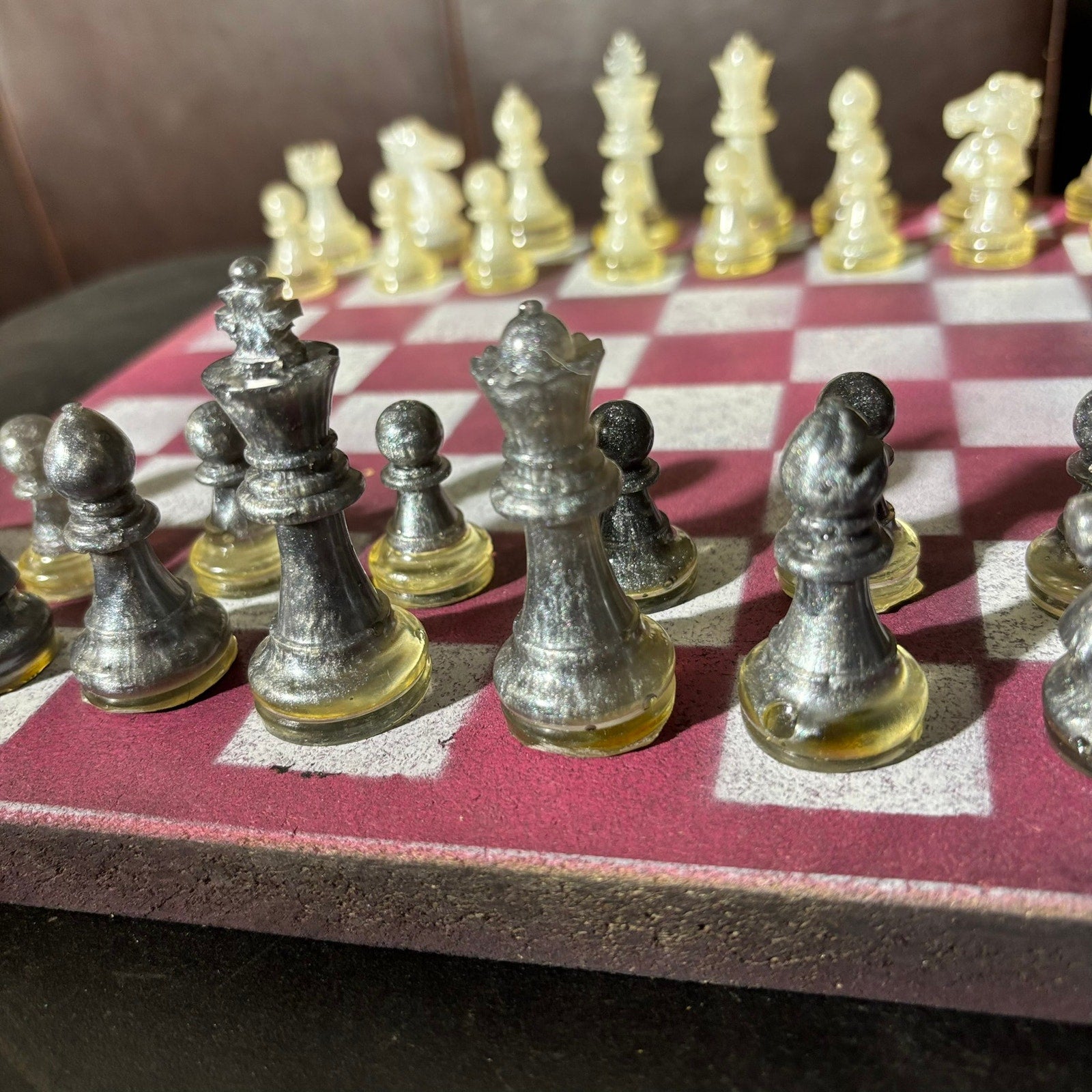 *** PLEASE READ: The resin pieces that have clear transparent parts will slowly turn royal amber as time goes on (Clear see through resin turn amber with time). Most of the sets are solid or colored so there is no need to expect a change at all, but some have clear transparent bottoms that will turn amber. I write this because some of our chess sets may not sell for a year or two and the photos are taken when the item is listed online. Meaning the photos will have slight difference. Rest assured, the amber is beautiful and vintage!