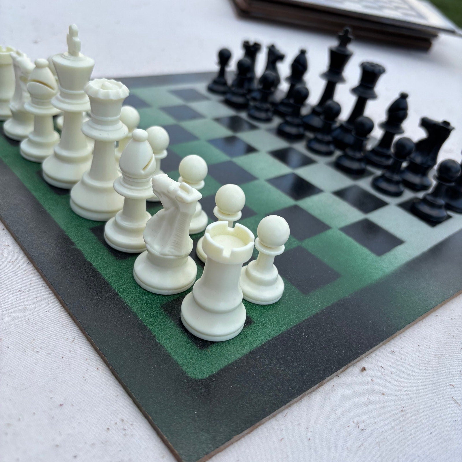 Introducing our exclusive Handcrafted Hardboard Chess Set, meticulously designed with precision and care. Measuring 12 inches by 12 inches, this chess set features a beautifully painted hardwood board that doubles as a work of art. Each set is a unique, one-of-a-kind creation, crafted by hand to ensure that no two sets are alike. Elevate your gaming experience with this exceptional chess set that combines vibrant design with the touch of artisan craftsmanship.