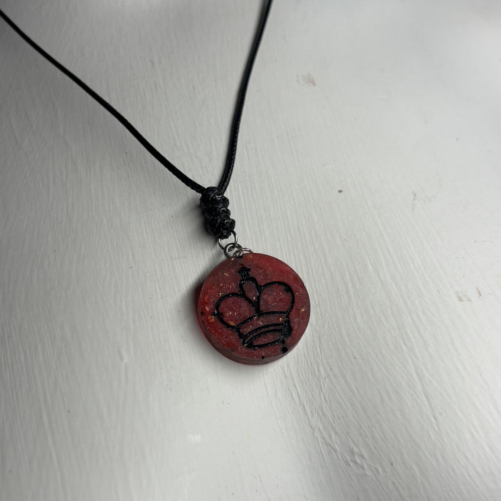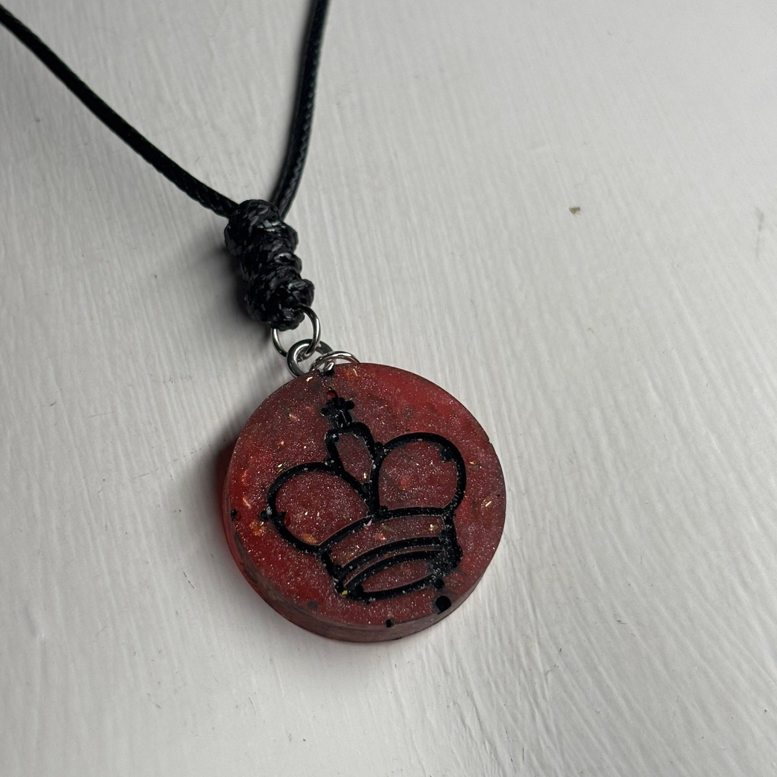 Fading Red Crystal King - Handmade Resin Chess Necklace