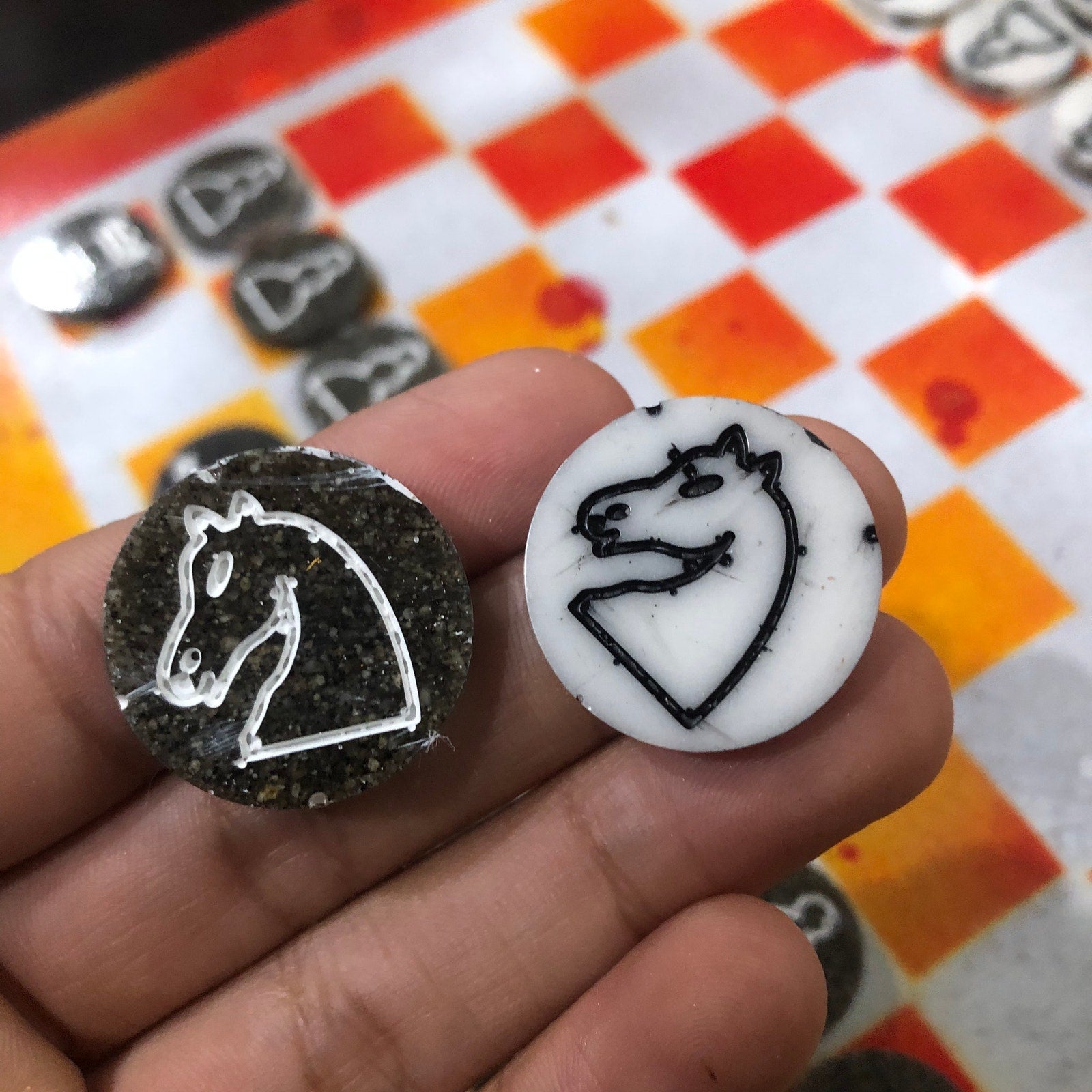 Introducing our exclusive Handcrafted Hardboard Chess Set, meticulously designed with precision and care. Measuring 12 inches by 12 inches, this chess set features a beautifully painted hardwood board that doubles as a work of art. Each set is a unique, one-of-a-kind creation, crafted by hand to ensure that no two sets are alike. Elevate your gaming experience with this exceptional chess set that combines vibrant design with the touch of artisan craftsmanship.