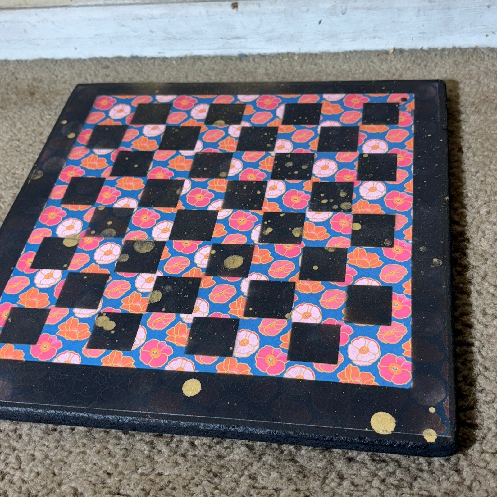 Each board features a layer of beautifully Scrapbook Paper Fused/Glued with particle board to give it a unique pretty pattern. We then paint squares onto the board to make them into fabulous chess boards. Made with a sturdy particle board base and smooth, beveled edges, this board is stunning.