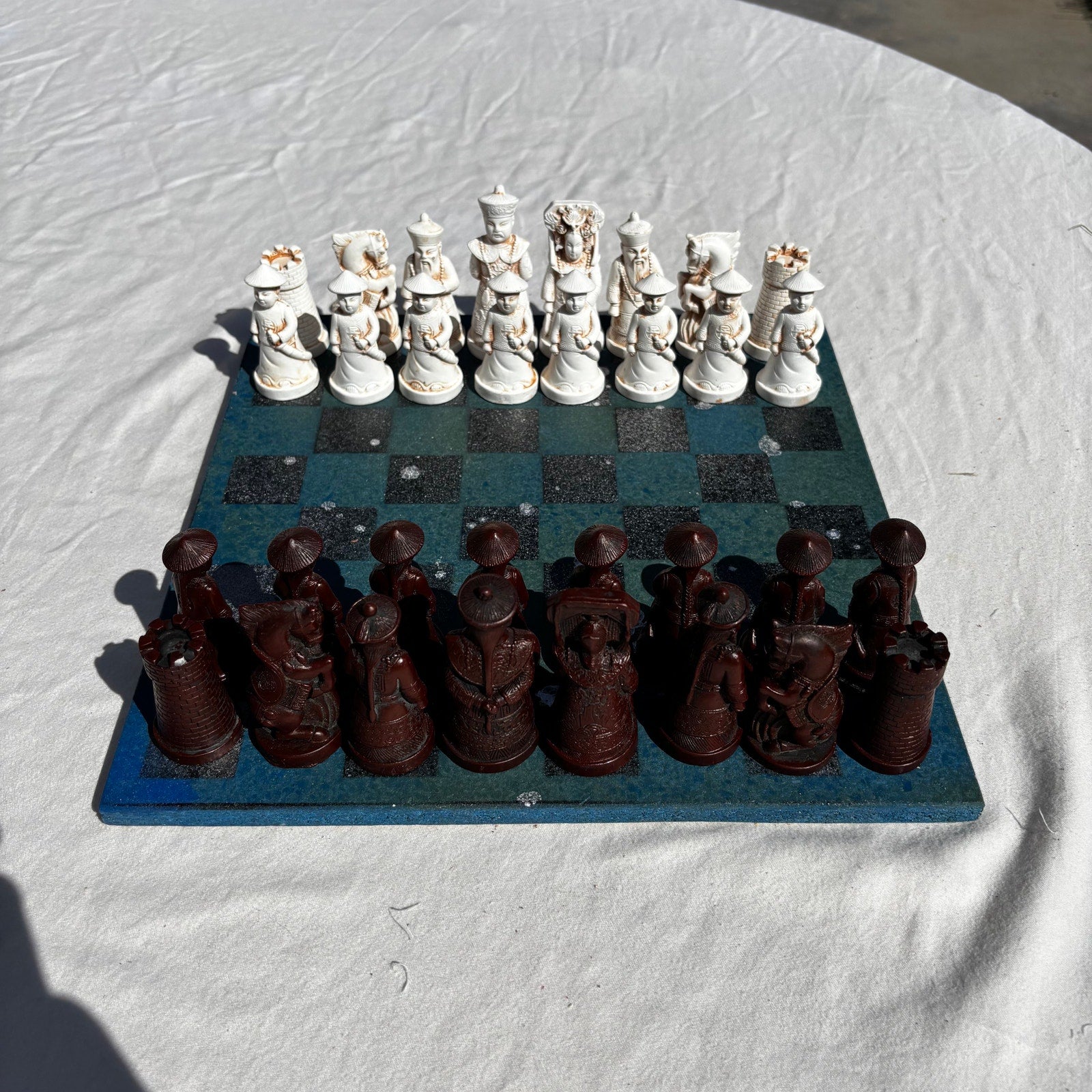 This set is not just a game; it's a work of art, perfect for collectors and chess enthusiasts alike. The attention to detail and craftsmanship makes it a standout piece. Whether you're looking for a beautiful display item or a functional chess set for play, this hand-painted creation is sure to impress. The unique design and quality materials make it a valuable addition to any collection.