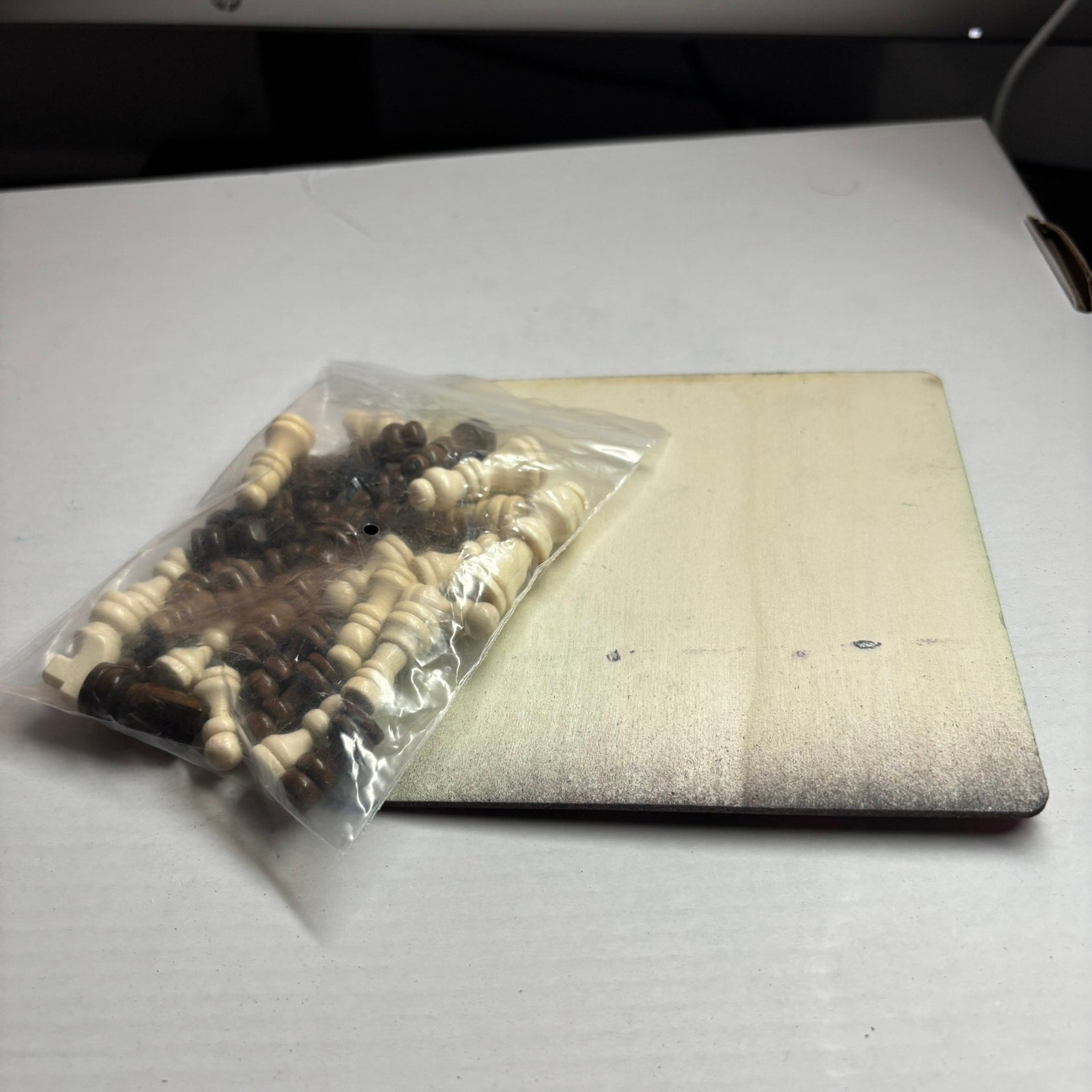 The board is made of a thin piece of wood and has been lovingly hand-painted, giving it a unique and charming touch. This chess set is perfect for collectors, travel enthusiasts, or anyone who appreciates a touch of whimsy.